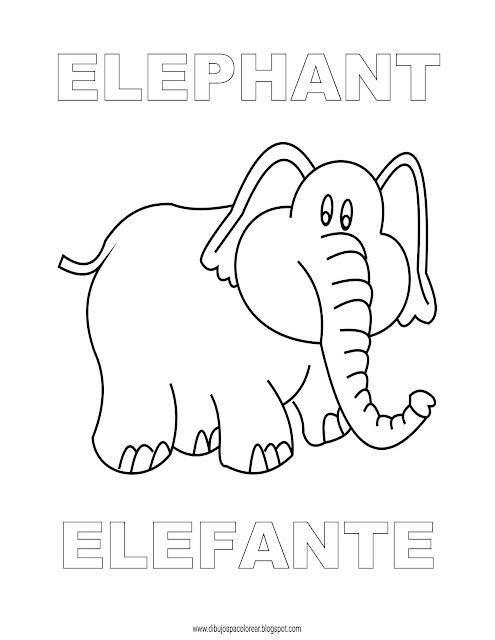 Dibujos Inglés - Español con "E": Elefante - Elephant
