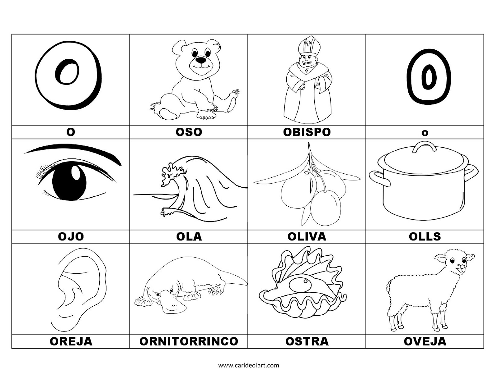Dibujos para colorear: Palabras con "O"