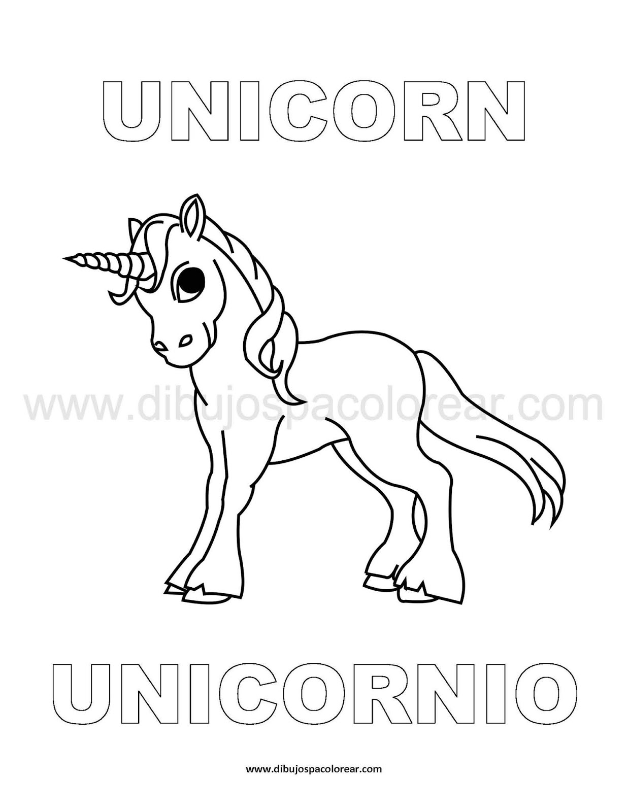 Dibujos Inglés - Español con U: Unicornio - Unicorn