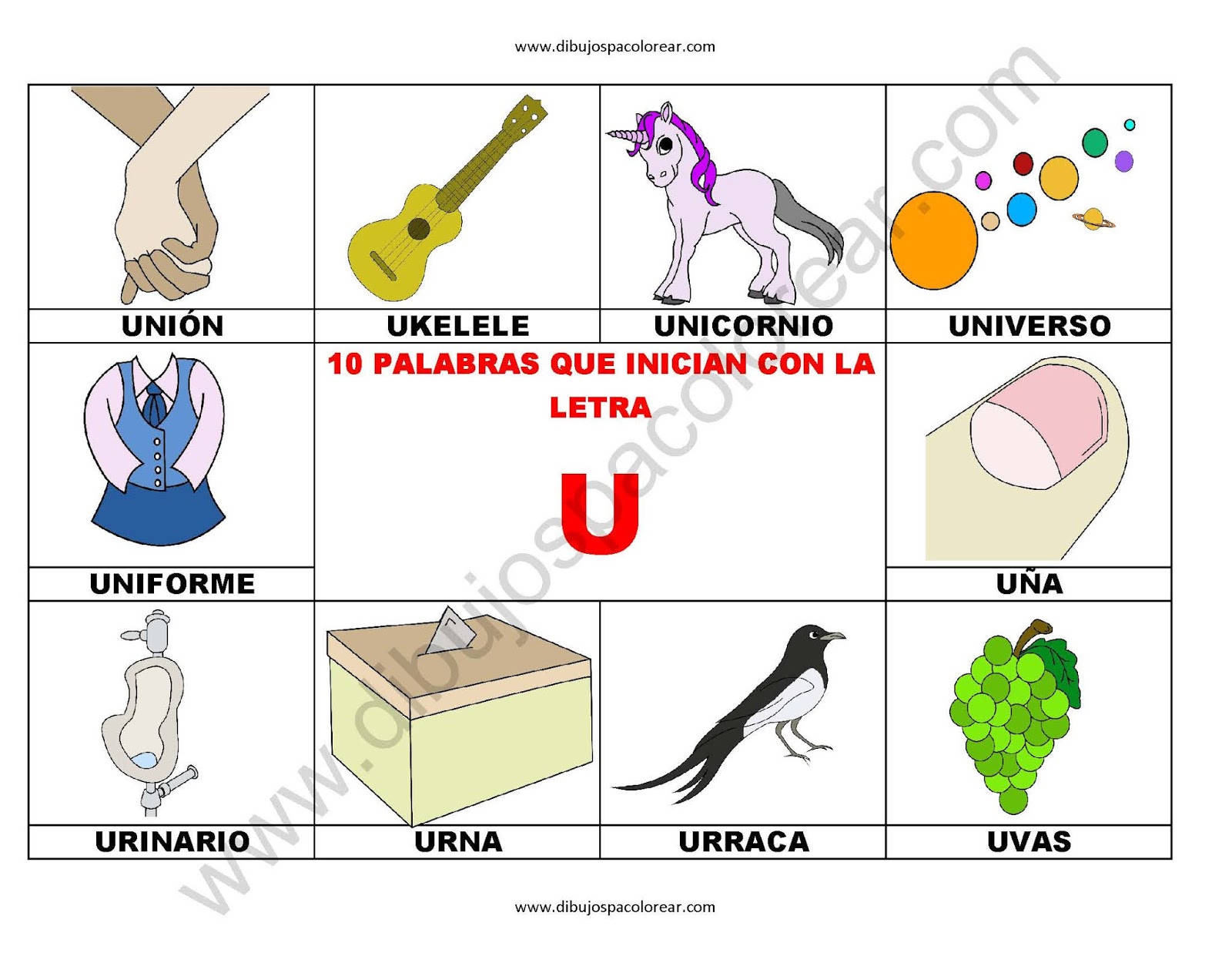 10 palabras u objetos que inician con la letra U