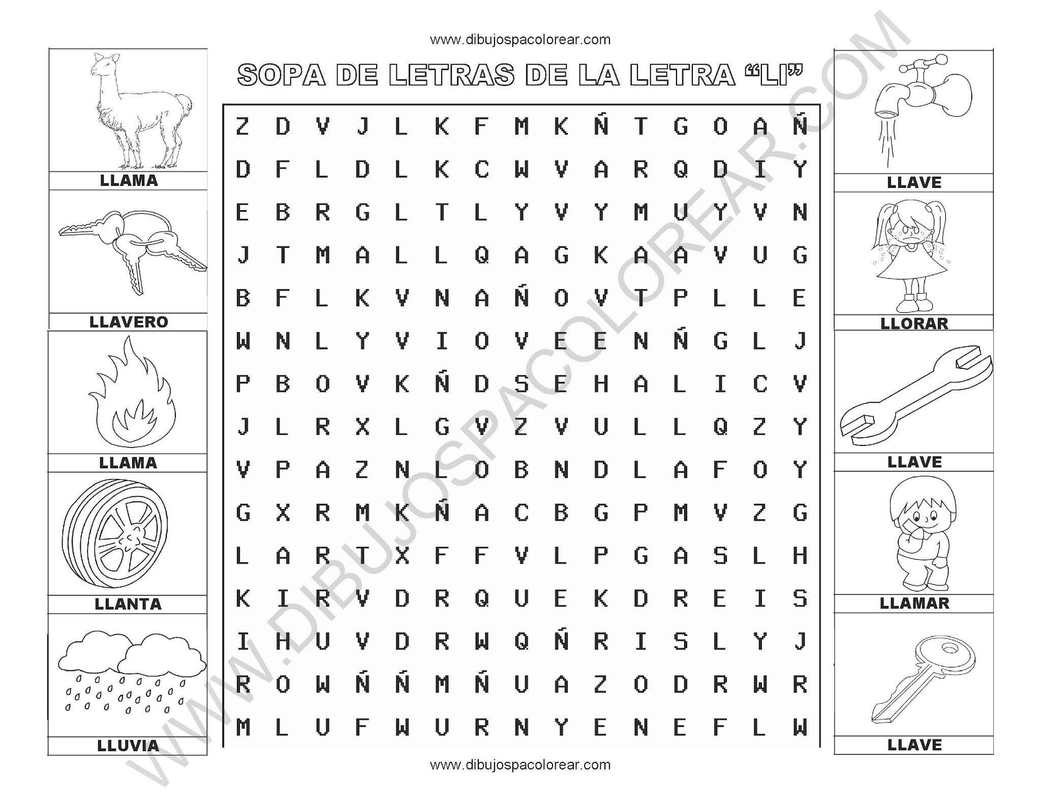 Sopa de letras de la letra LL