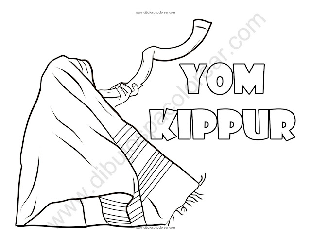 judía cada 4 de octubre celebra Yom Kippur o Día de la Expiación, dibujo a color y para colorear.