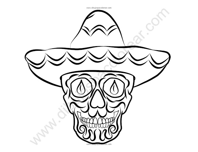 Catrina Mandala Sombrero dibujo a color y para colorear.