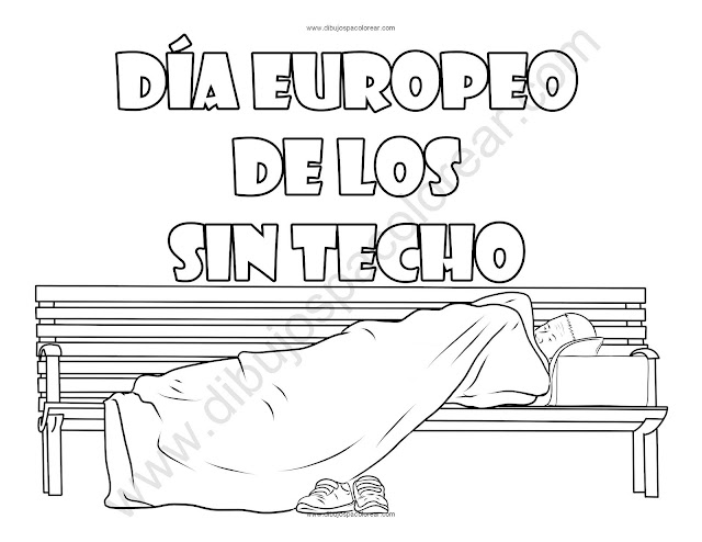 Día Europeo de los Sin Techo dibujo a color y para colorear