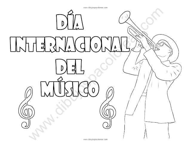 Día Internacional del Músico dibujo a color y para colorear