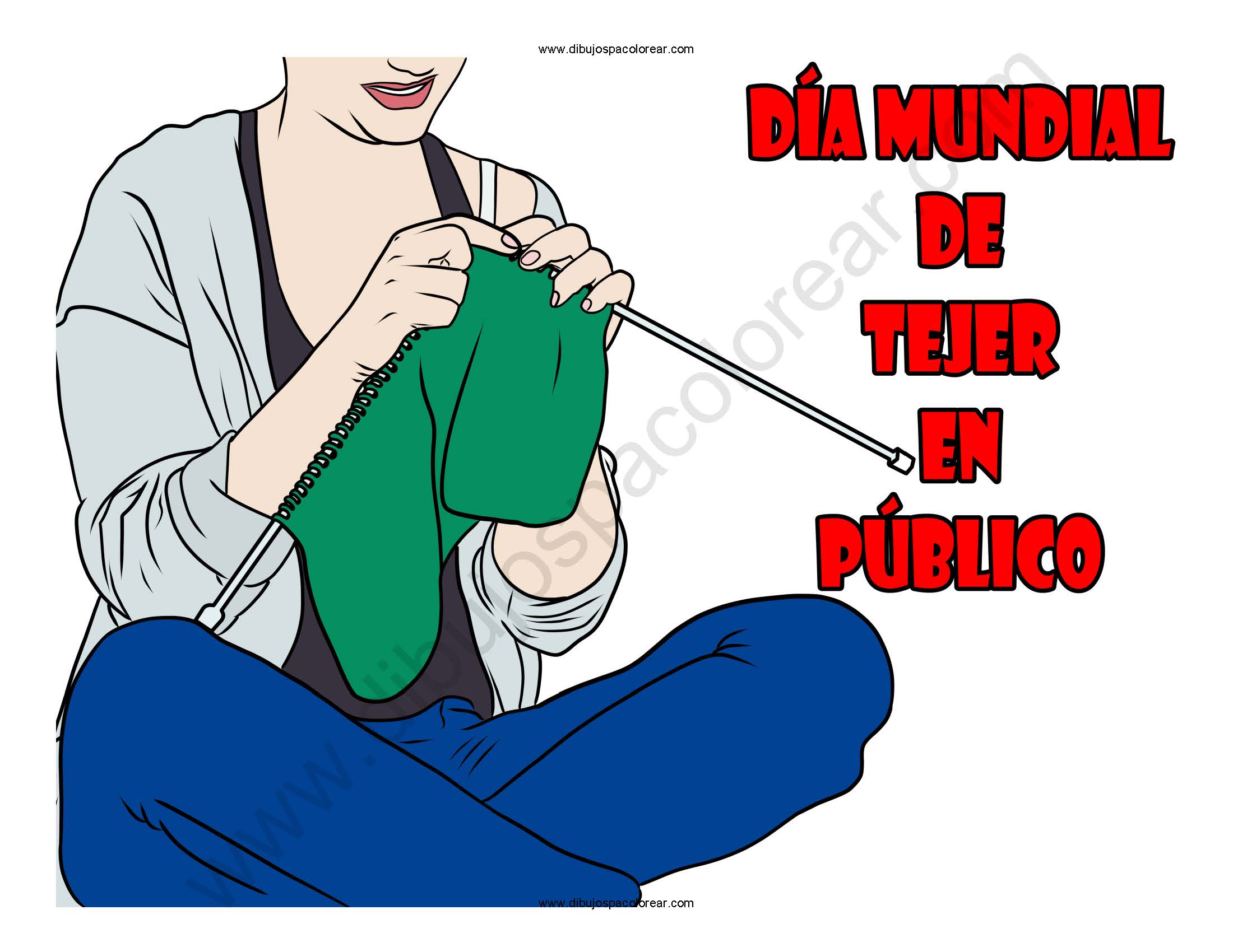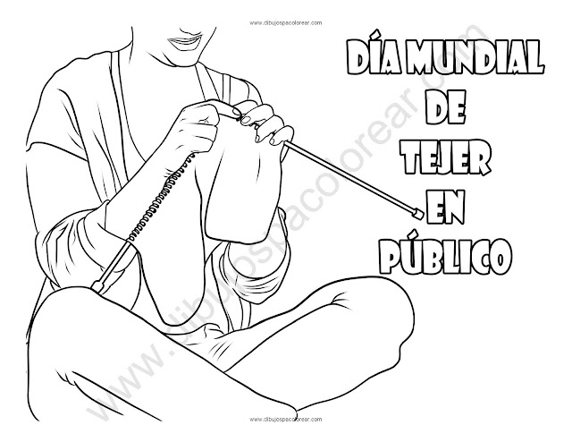 Día Mundial de Tejer en Público dibujo a color y para colorear.