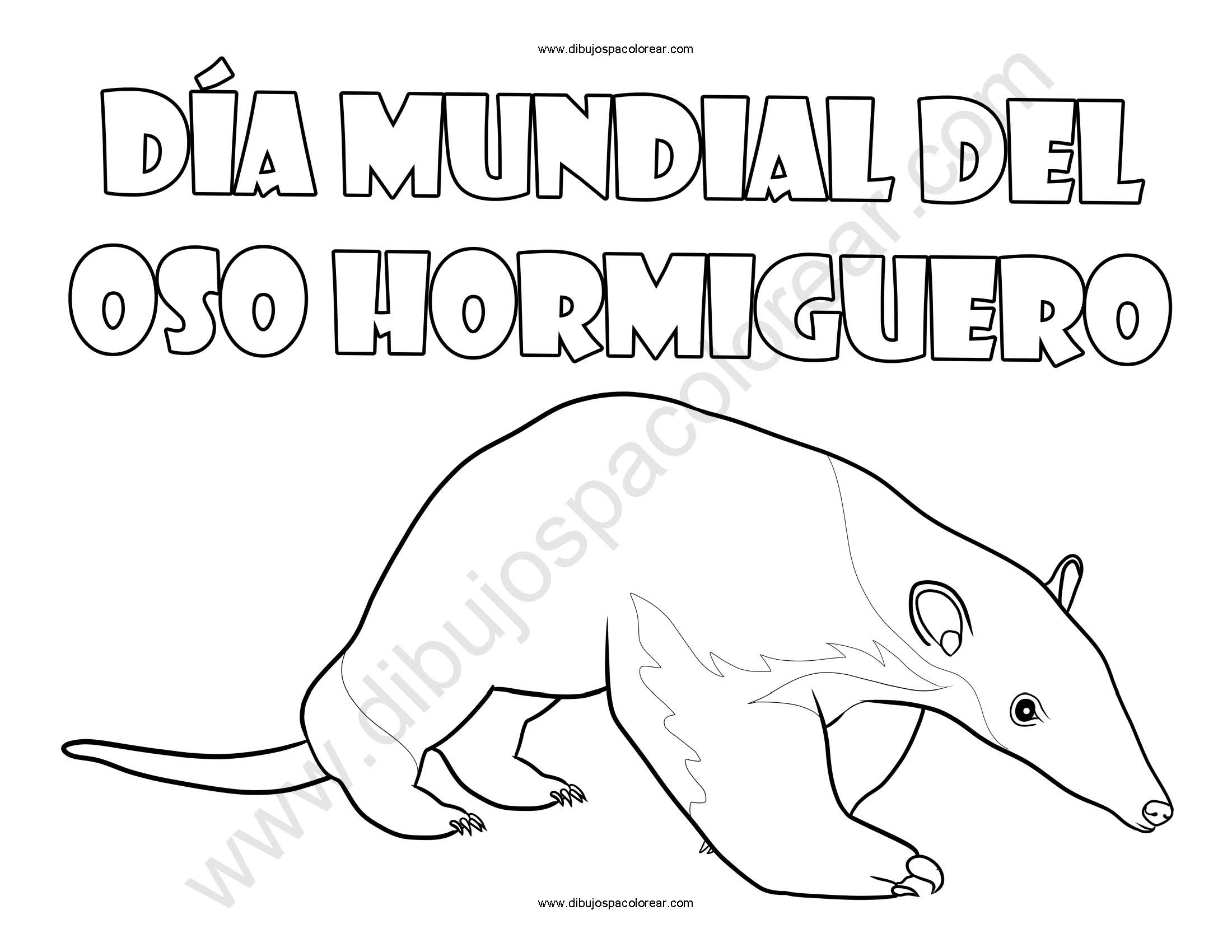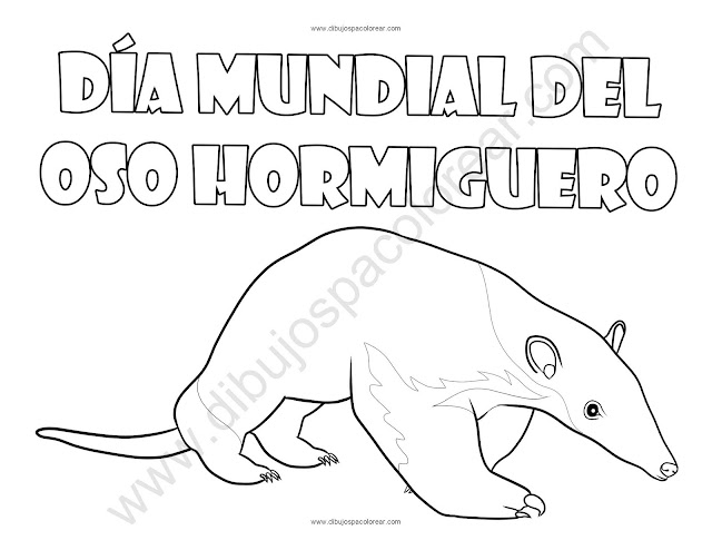 Día Mundial del Oso Hormiguero dibujo a color y para colorear