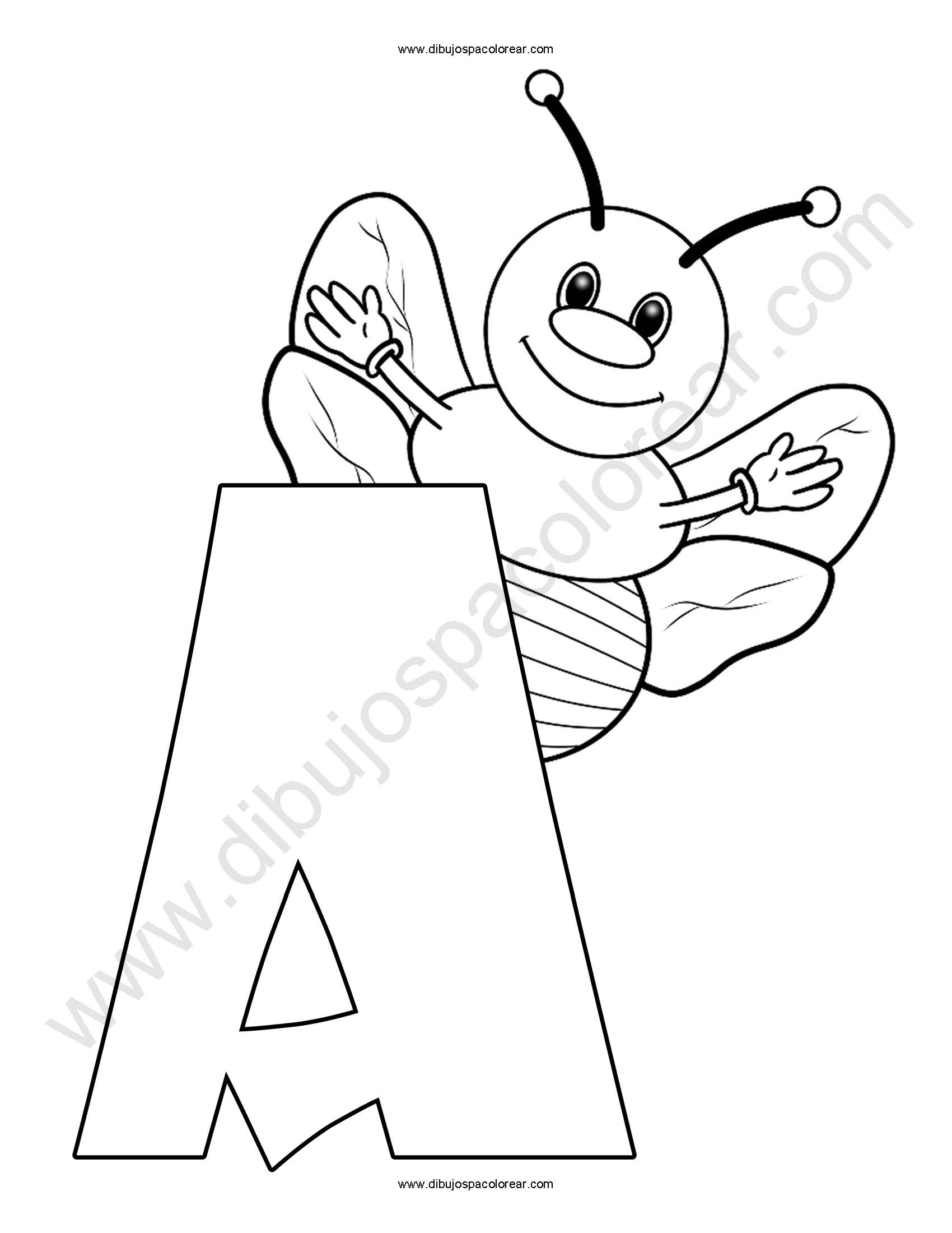 Letra A Abeja abecedario dibujo a color y para colorear.