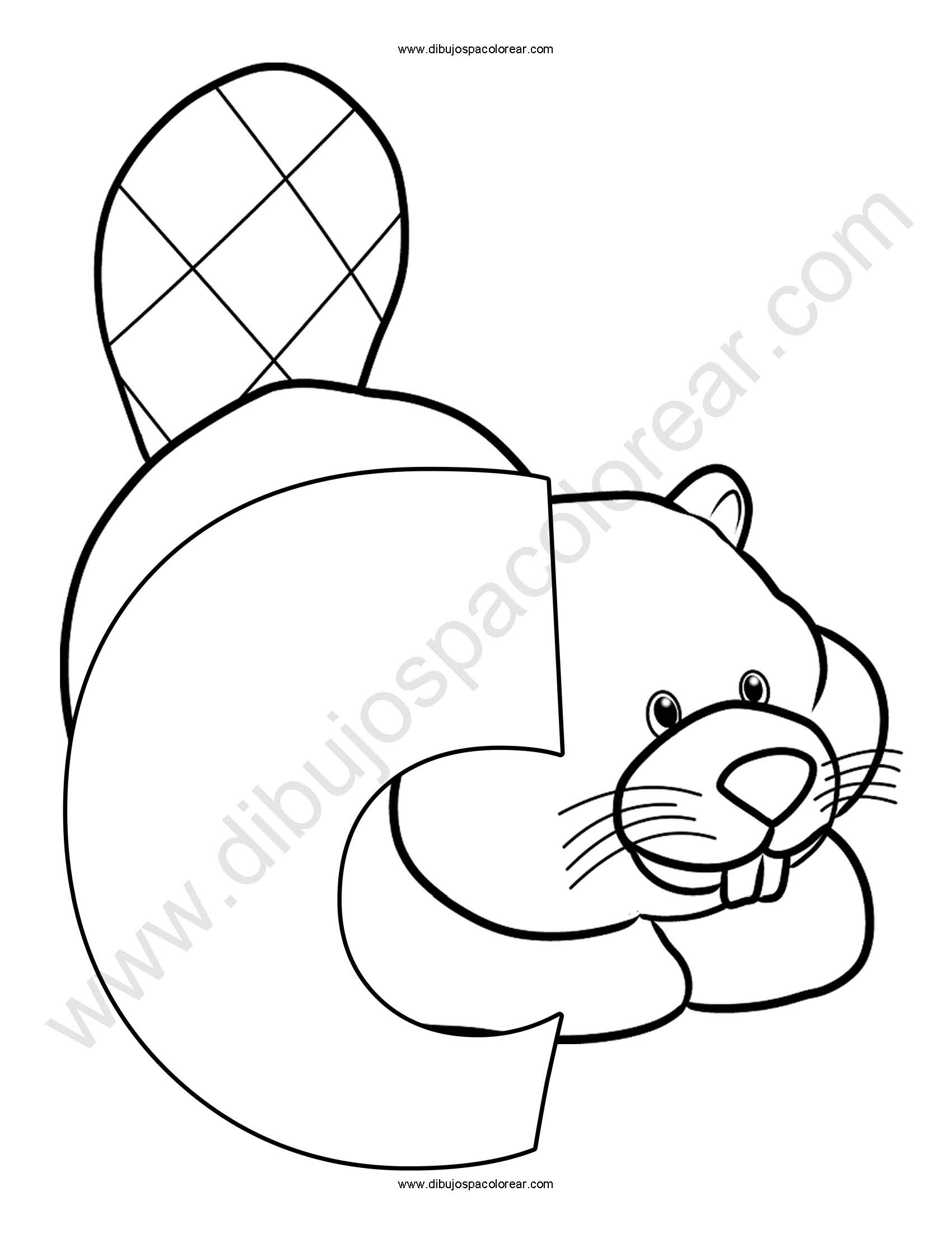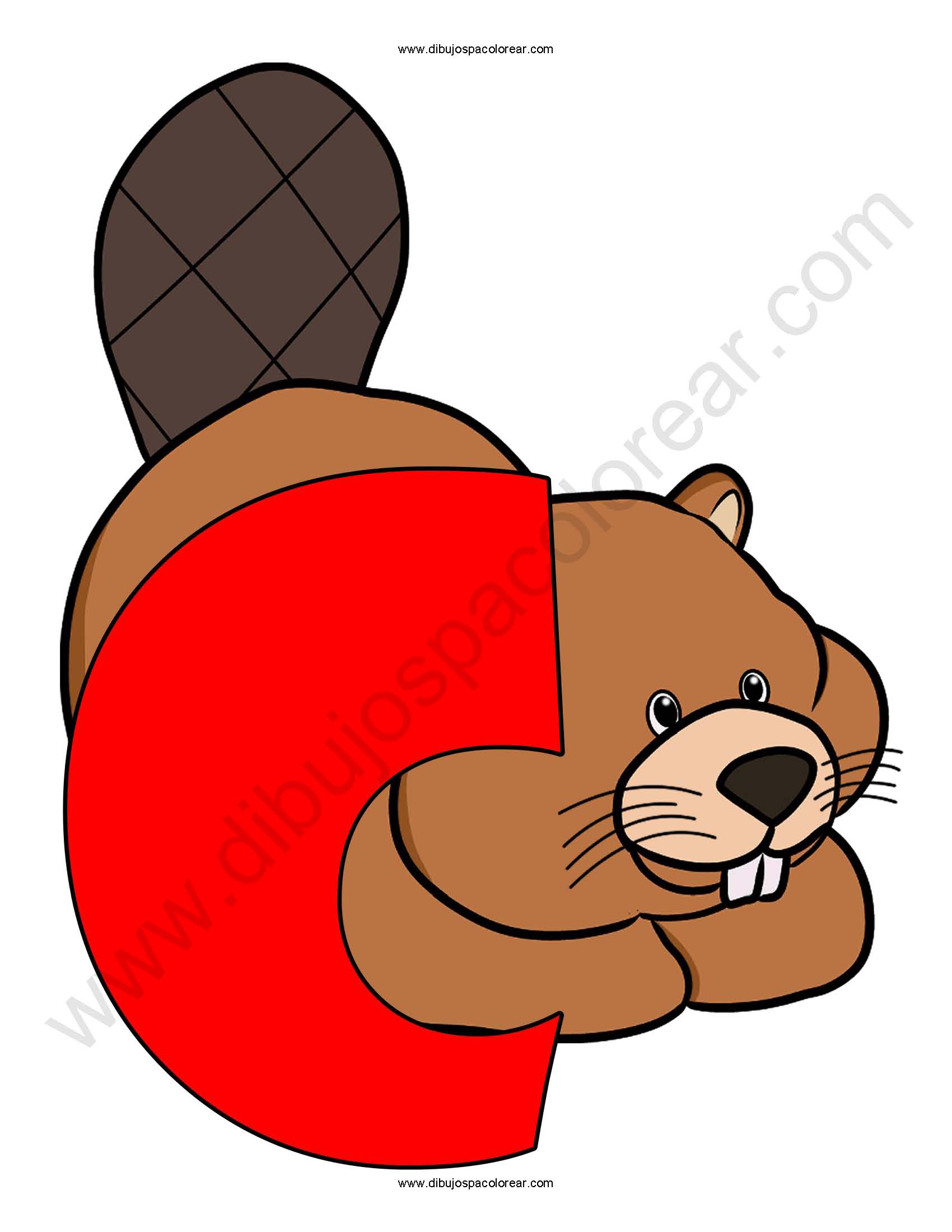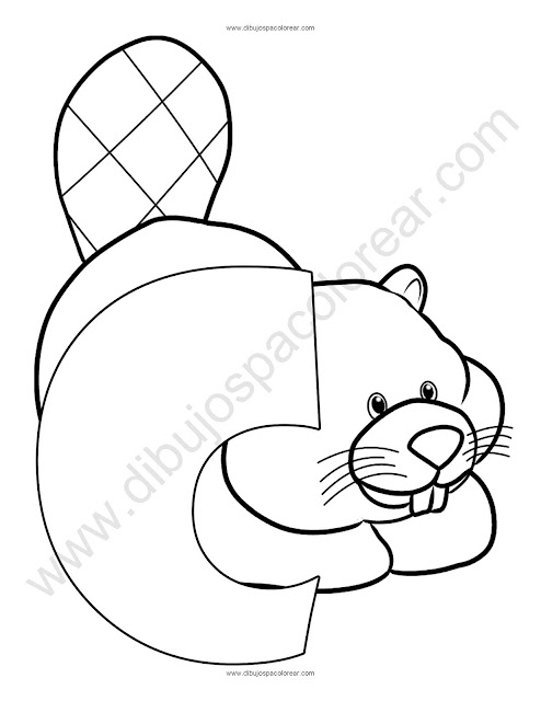 Letra C Castor abecedario dibujo a color y para colorear