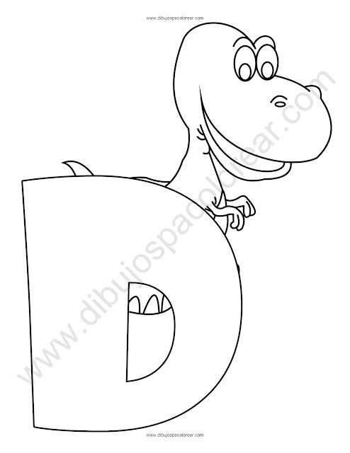 Letra D Dinosaurio abecedario dibujo a color y para colorear