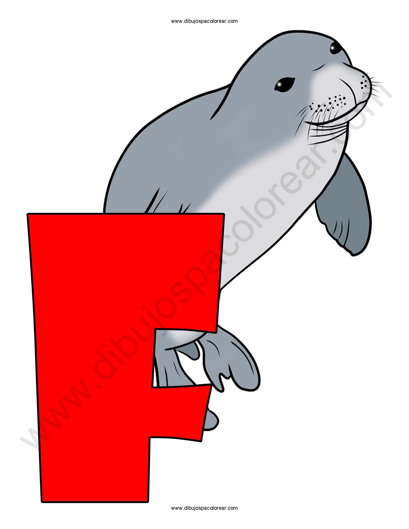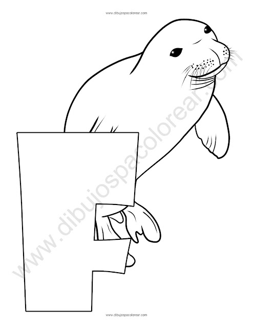Letra F Foca abecedario dibujo a color y para colorear