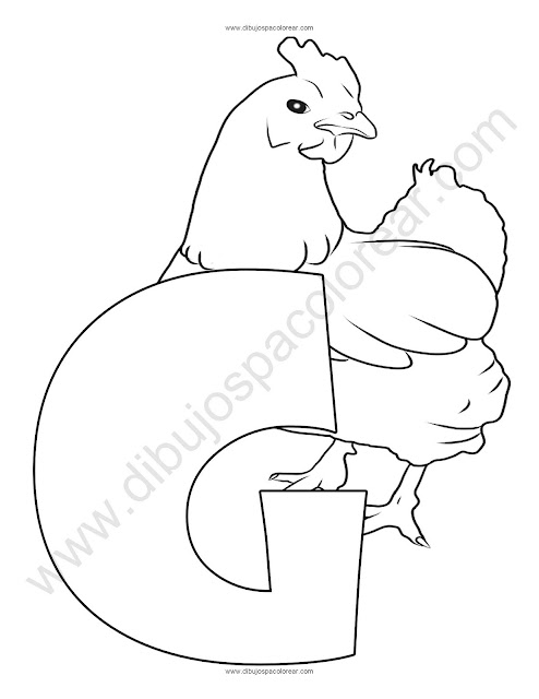 Letra G Gallina abecedario dibujo a color y para colorear