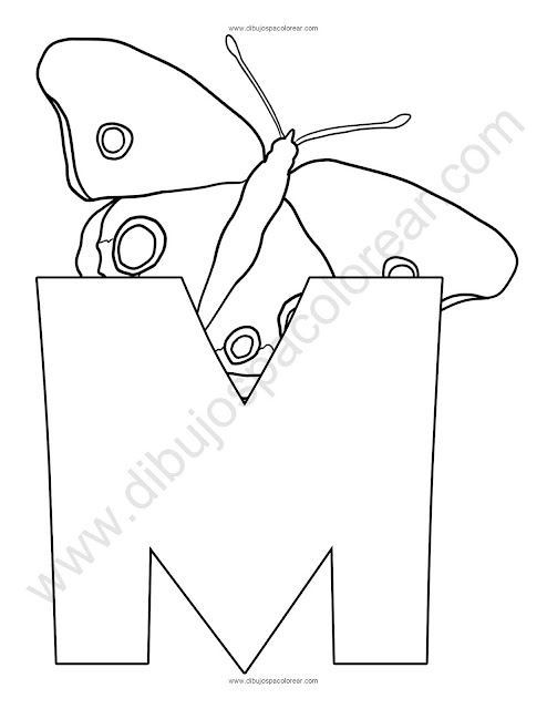 Letra M Mariposa abecedario dibujo a color y para colorear