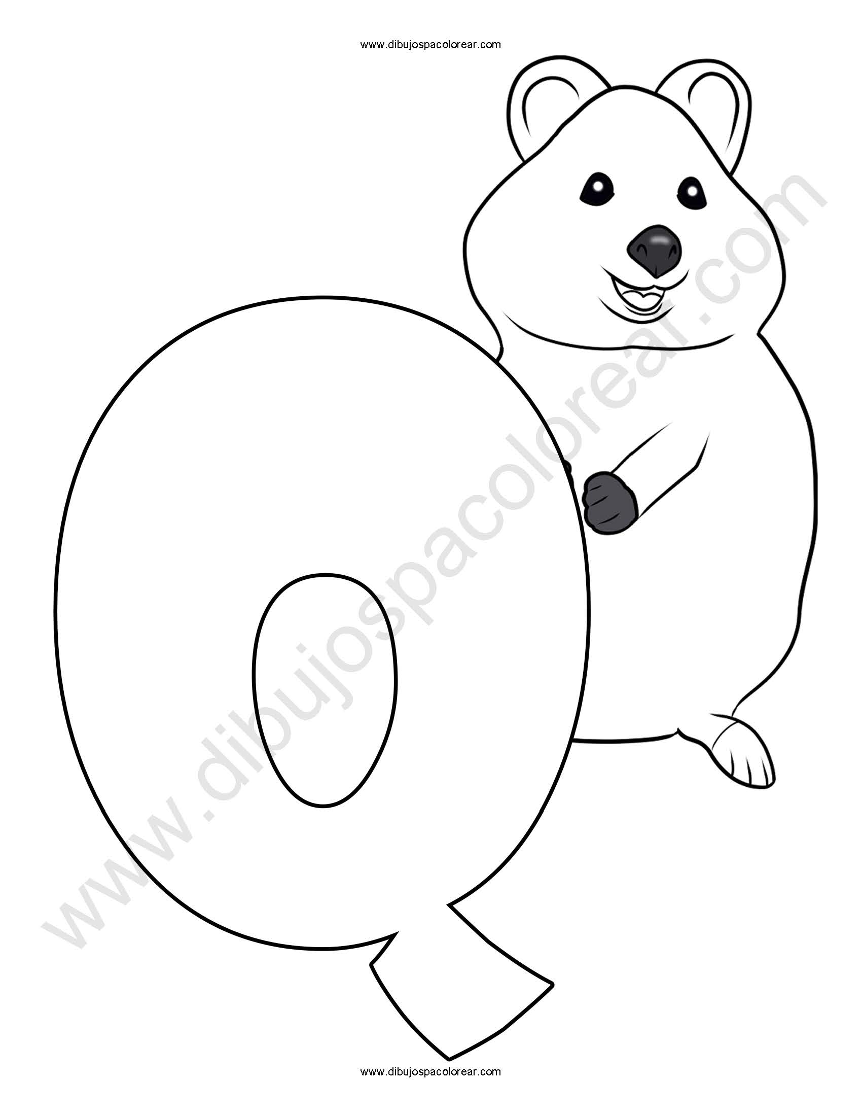Letra Q Quokka abecedario dibujo a color y para colorear