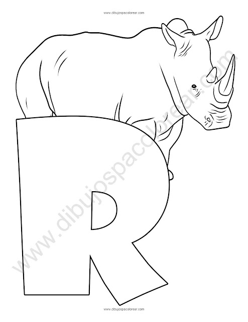 Letra R Rinoceronte abecedario dibujo a color y para colorear