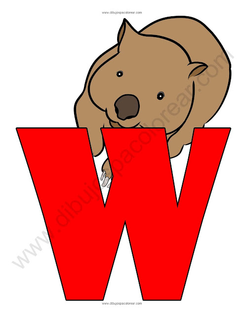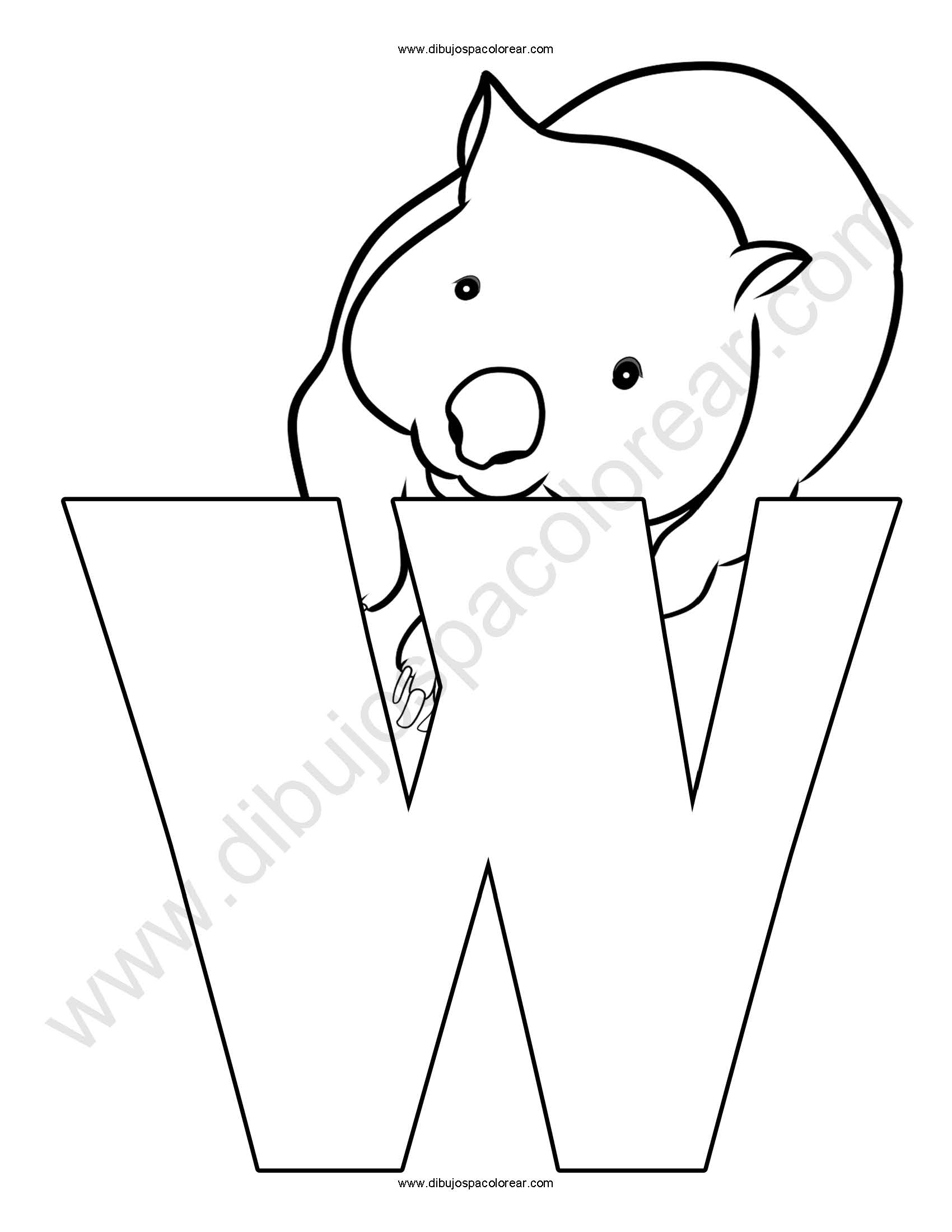 Letra W Wómbat abecedario dibujo a color y para colorear