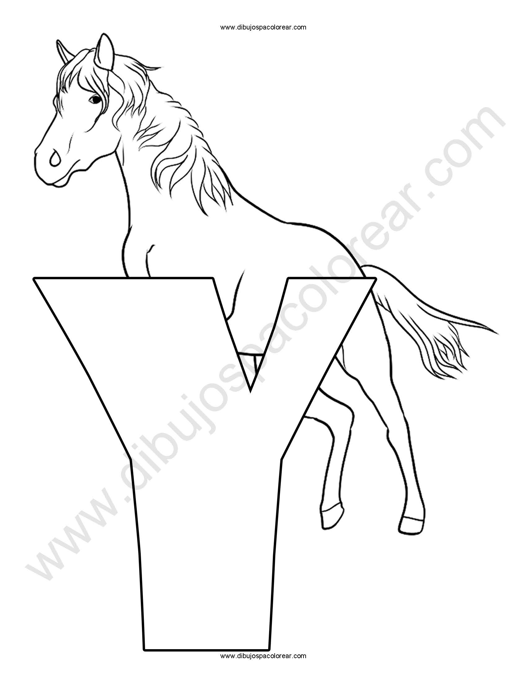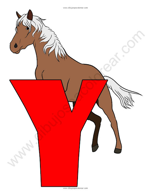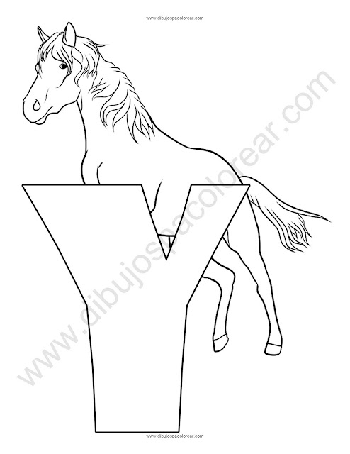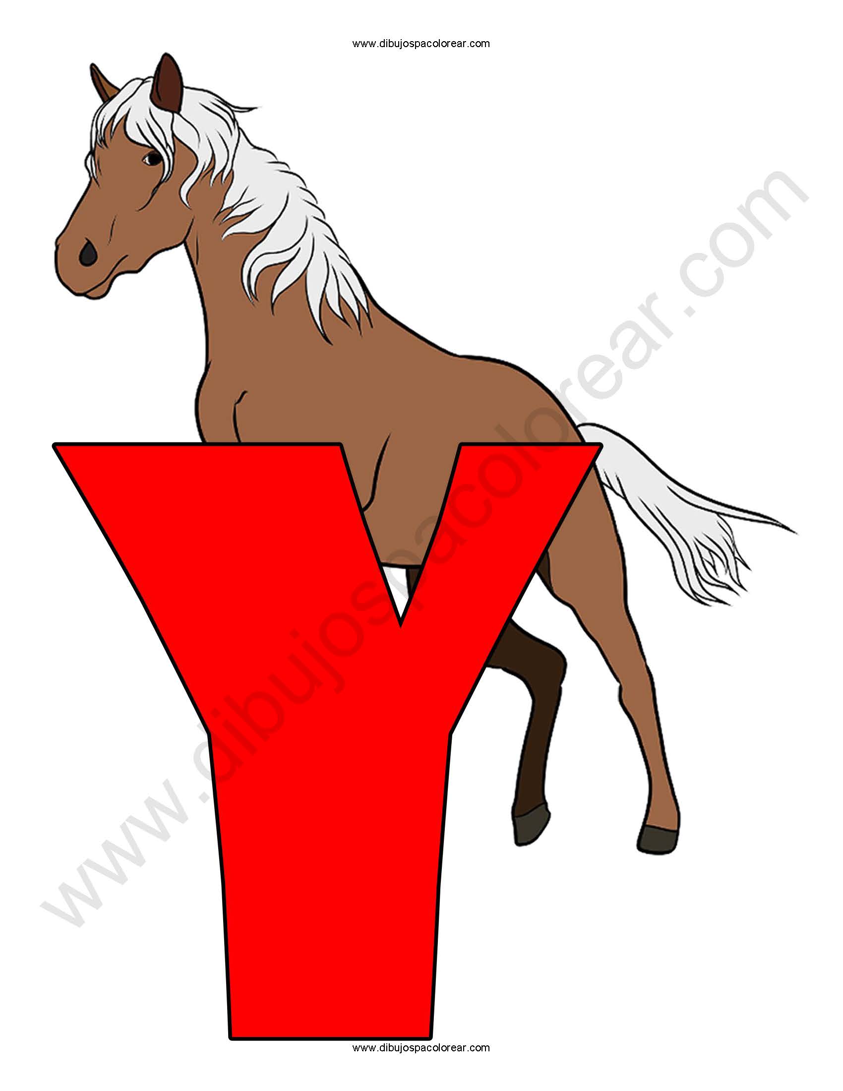 Letra Y Yegua abecedario dibujo a color y para colorear.