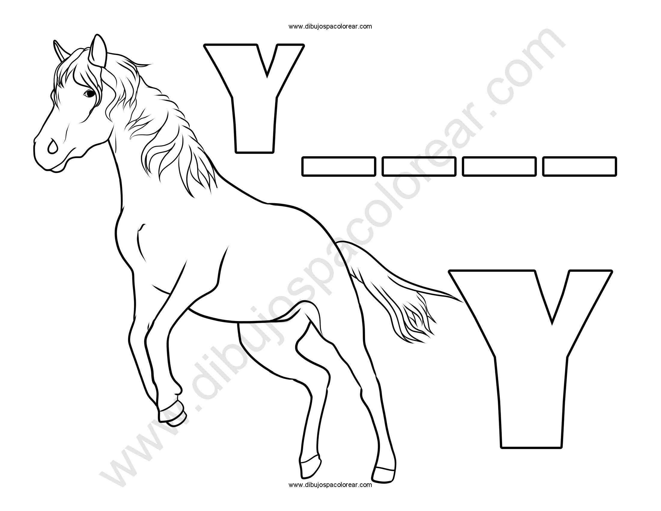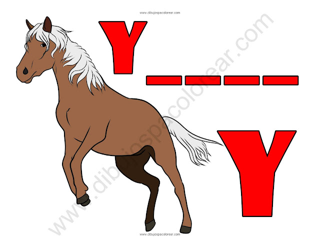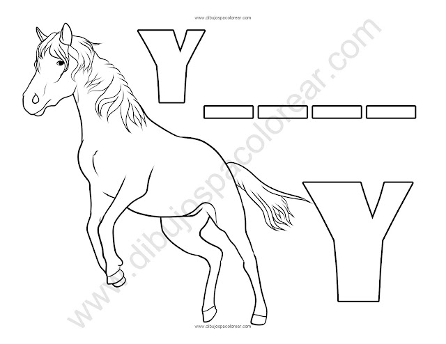 Yegua letra Y abecedario dibujo a color y para colorear