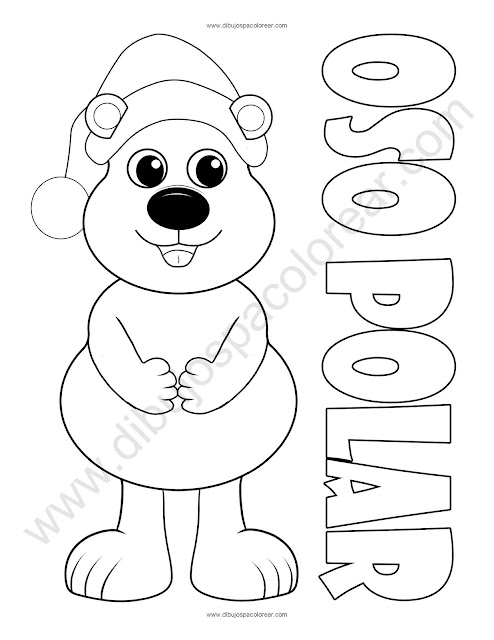 Oso Polar Temporada navideña Dibujo a color y para colorear.