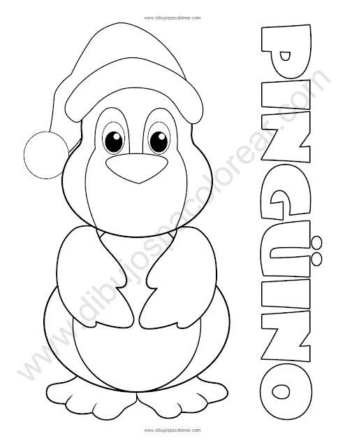 Pingüino Navidad Temporada navideña Dibujo a color y para colorear.