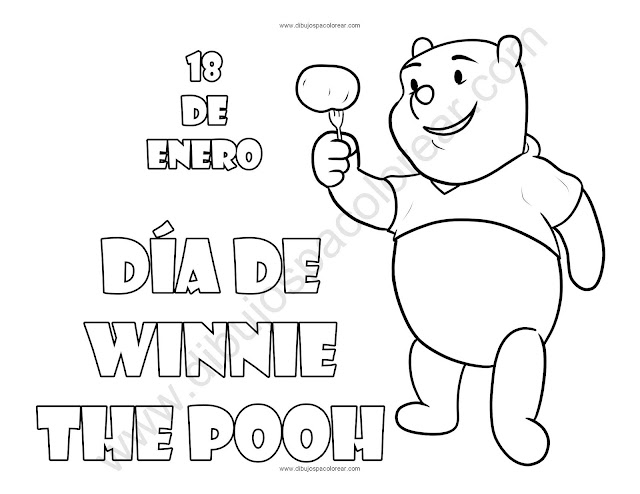 Día de Winnie The Pooh dibujo a color y para colorear.