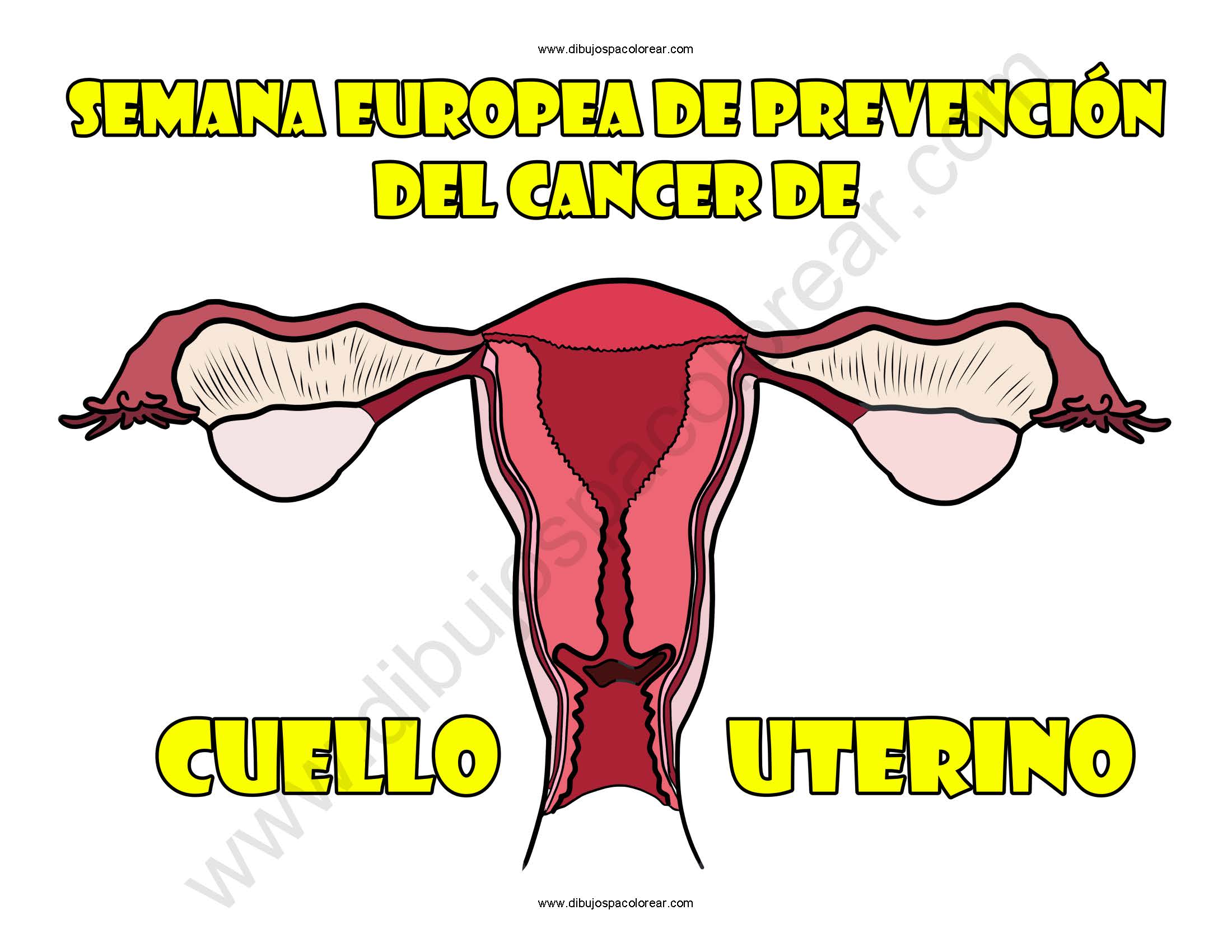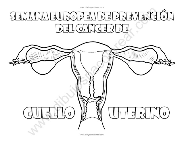 Semana Europea de Prevención del Cáncer de Cuello Uterino dibujo a color y para colorear.