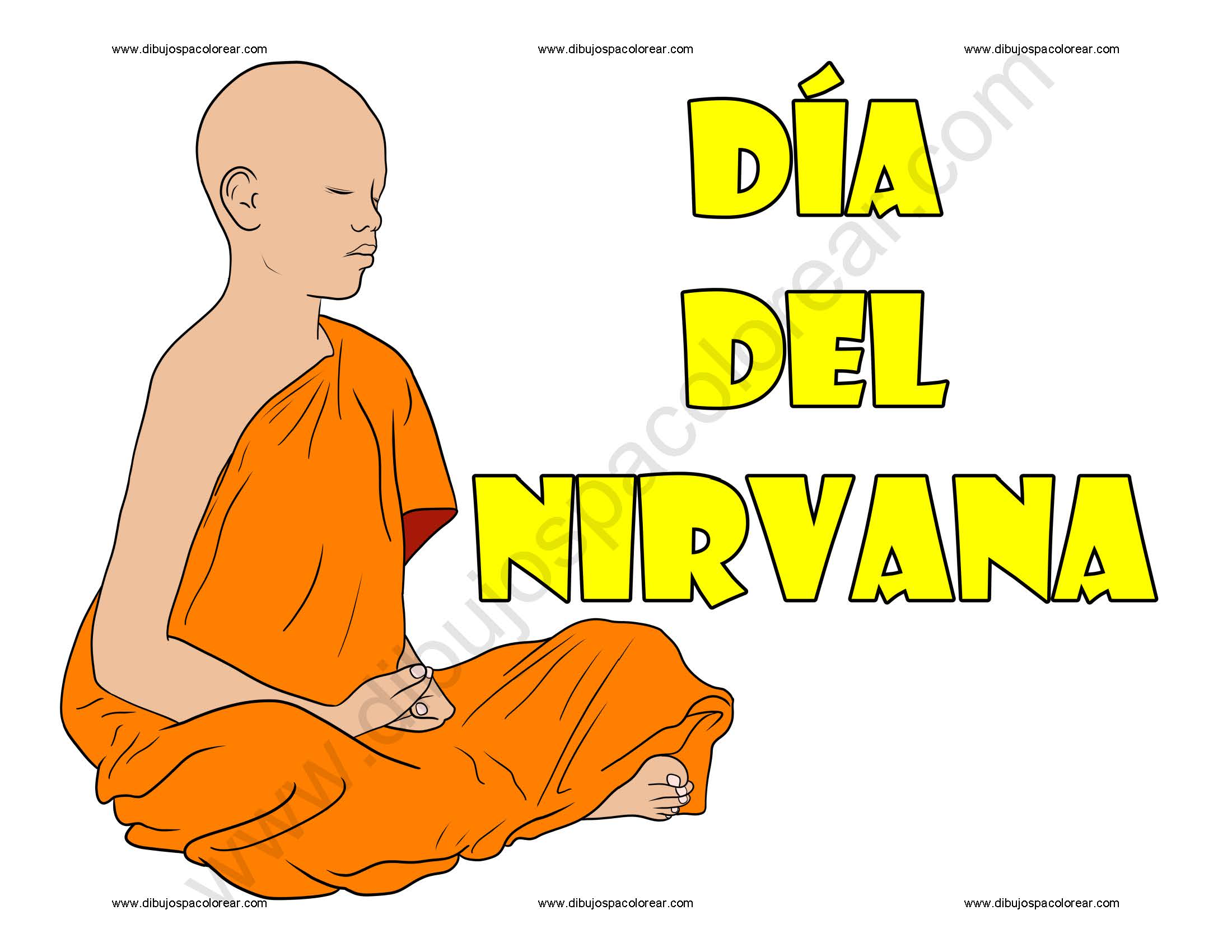 Día del Nirvana o Paranirvana dibujo a color y para colorear