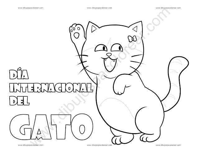 Dia internacional del Gato dibujo a color y para colorear