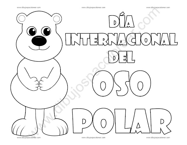 Dia Internacional del Oso Polar dibujo a color y para colorear