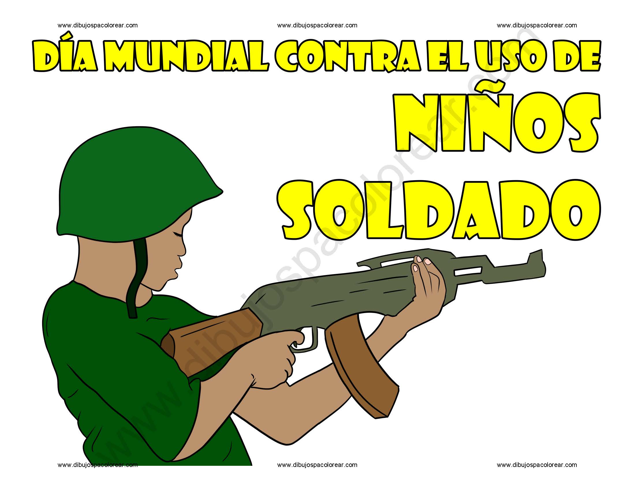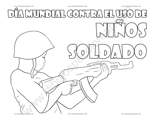 Día Mundial Contra el Uso de Niños Soldado dibujo a color y para colorear