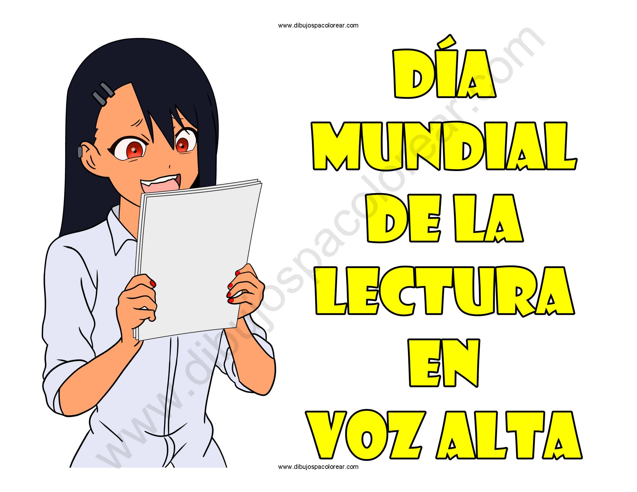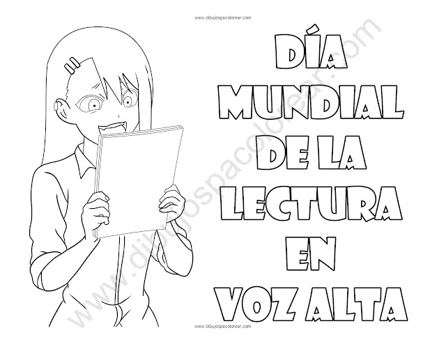 Dia Mundial de la Lectura en Voz Alta dibujo a color y para colorear