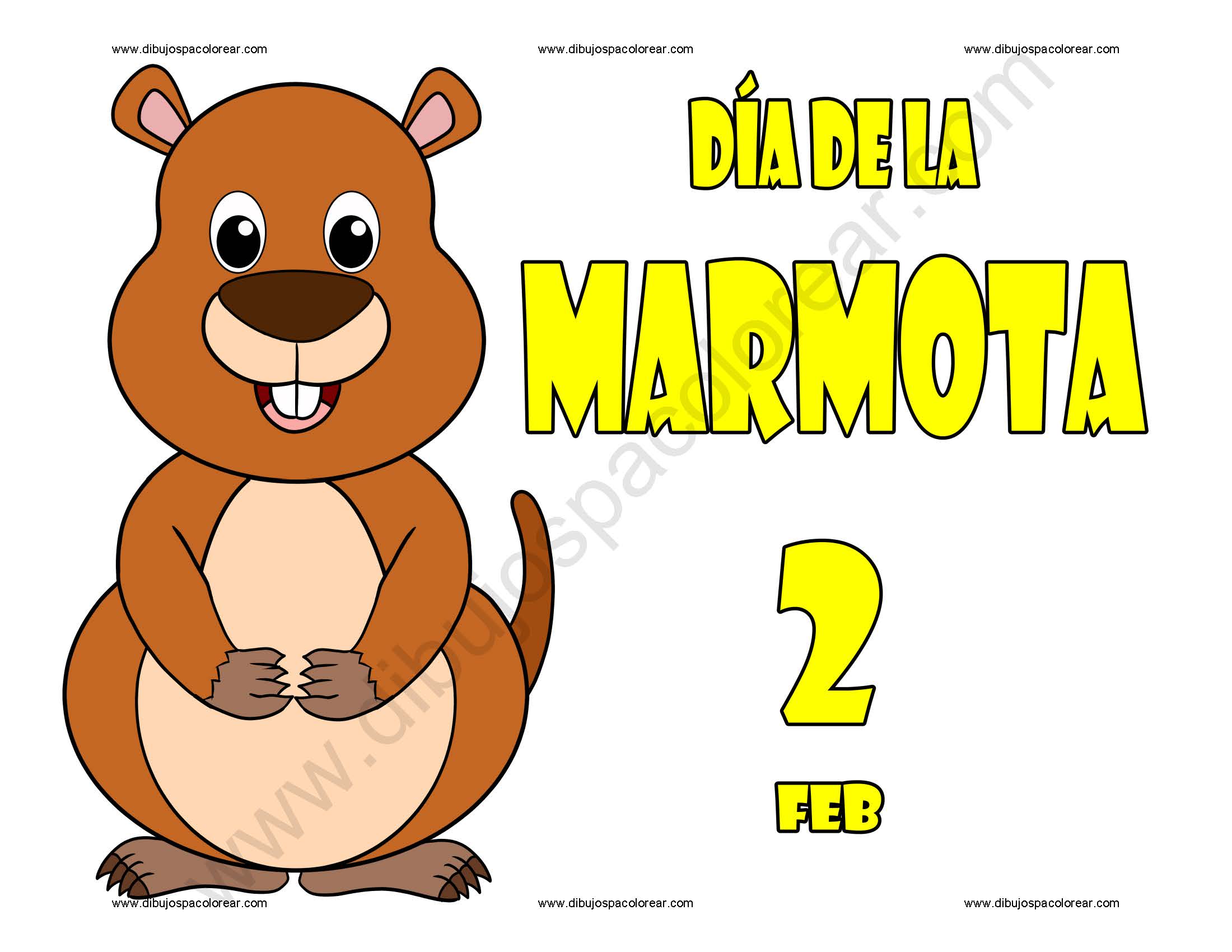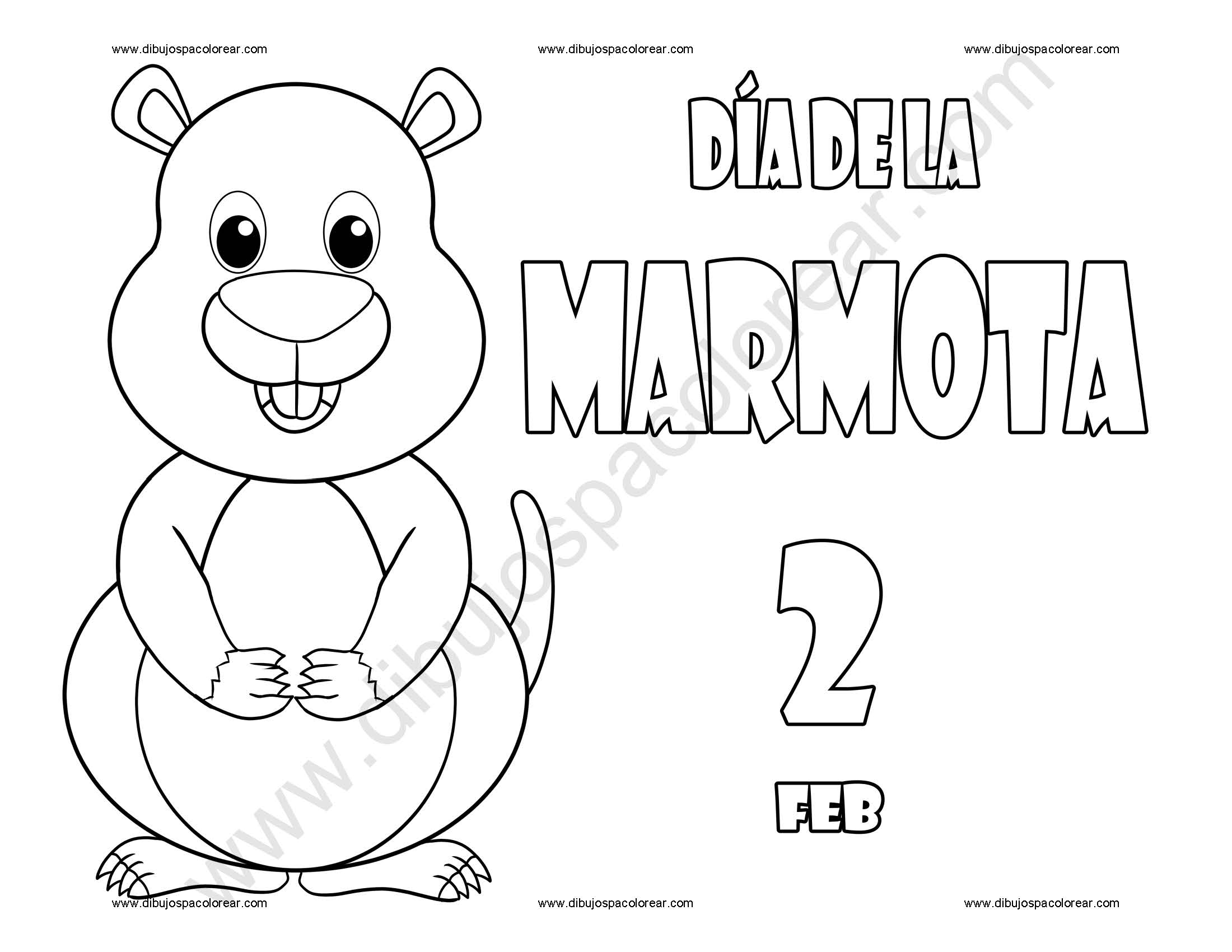 Dia Mundial de la Marmota dibujo a color y para colorear.