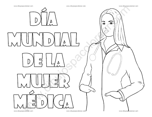 Día Mundial de la Mujer Médica dibujo a color y para colorear