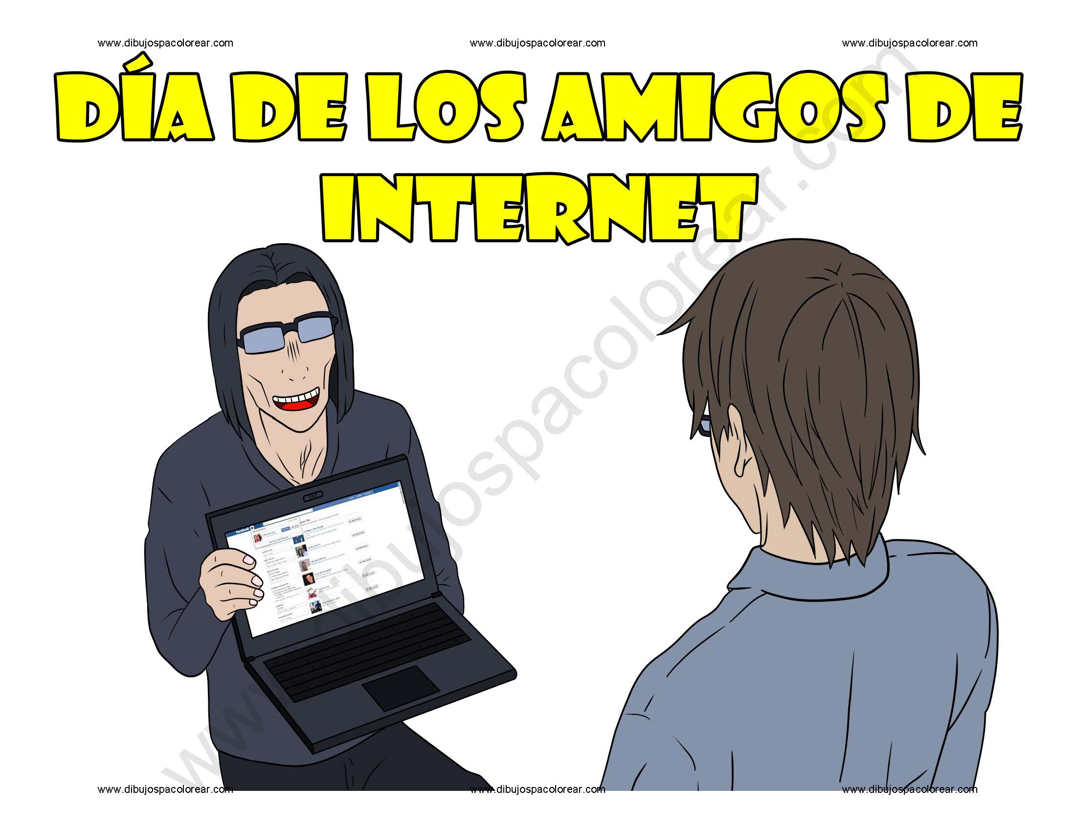 Día Mundial de los Amigo de Internet dibujo a color y para colorear