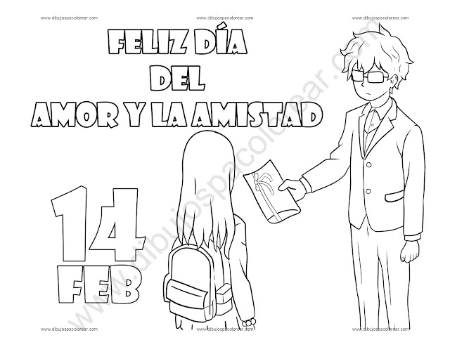 Feliz Día del Amor y la Amistad dibujo a color y para colorear