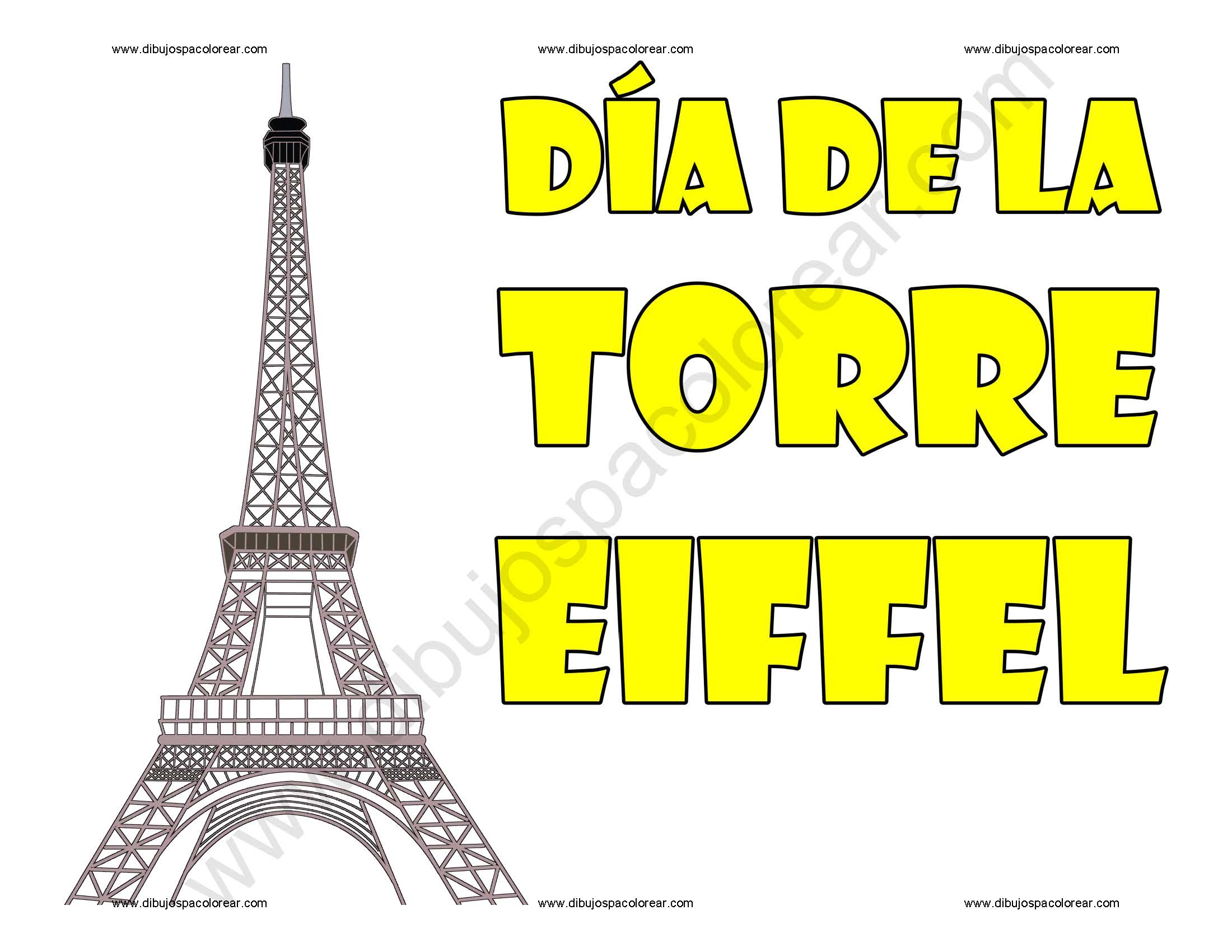 Día de la Torre Eiffel dibujo a color y para colorear.