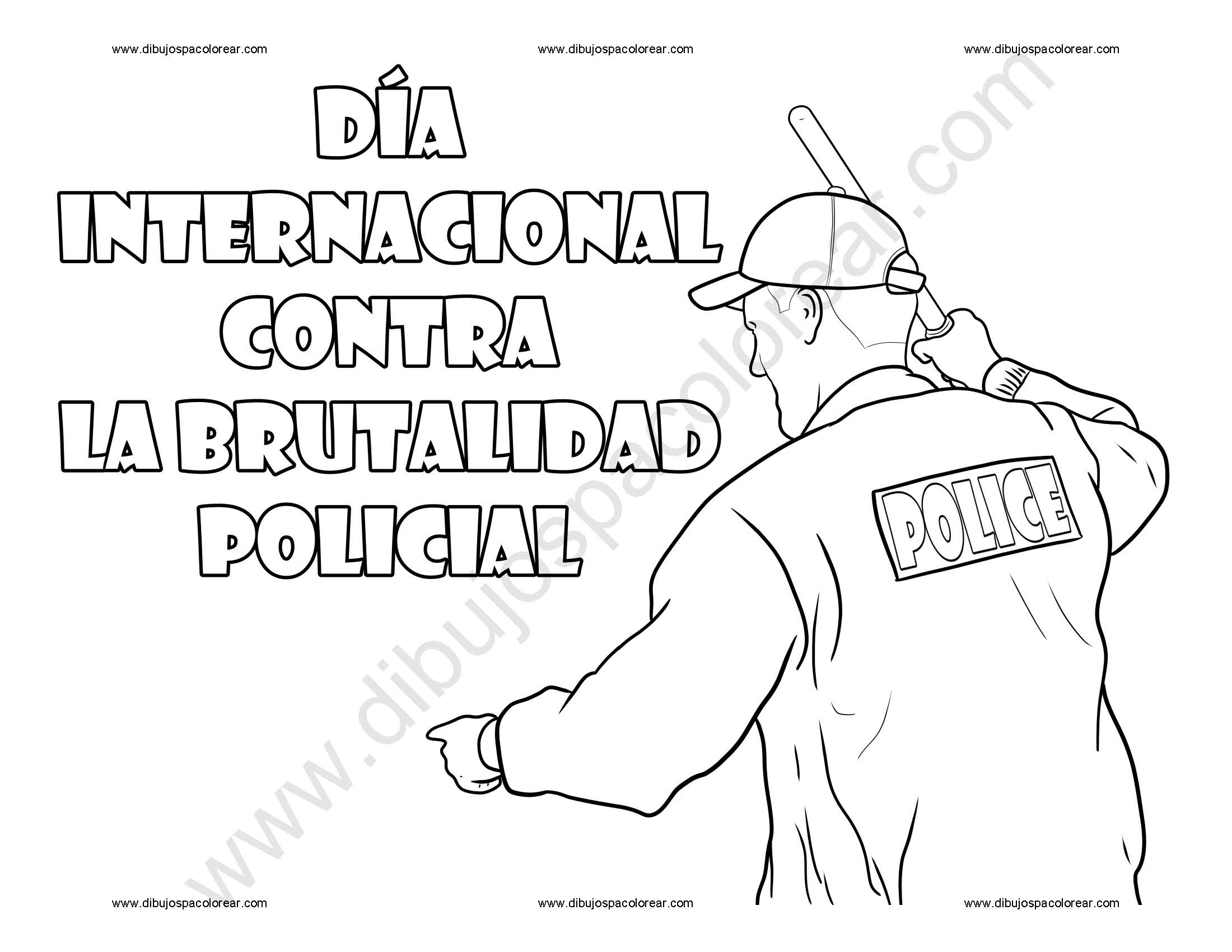 Día Internacional contra la Brutalidad Policial dibujo a color y para colorear