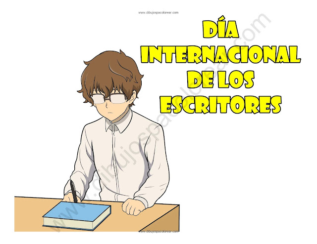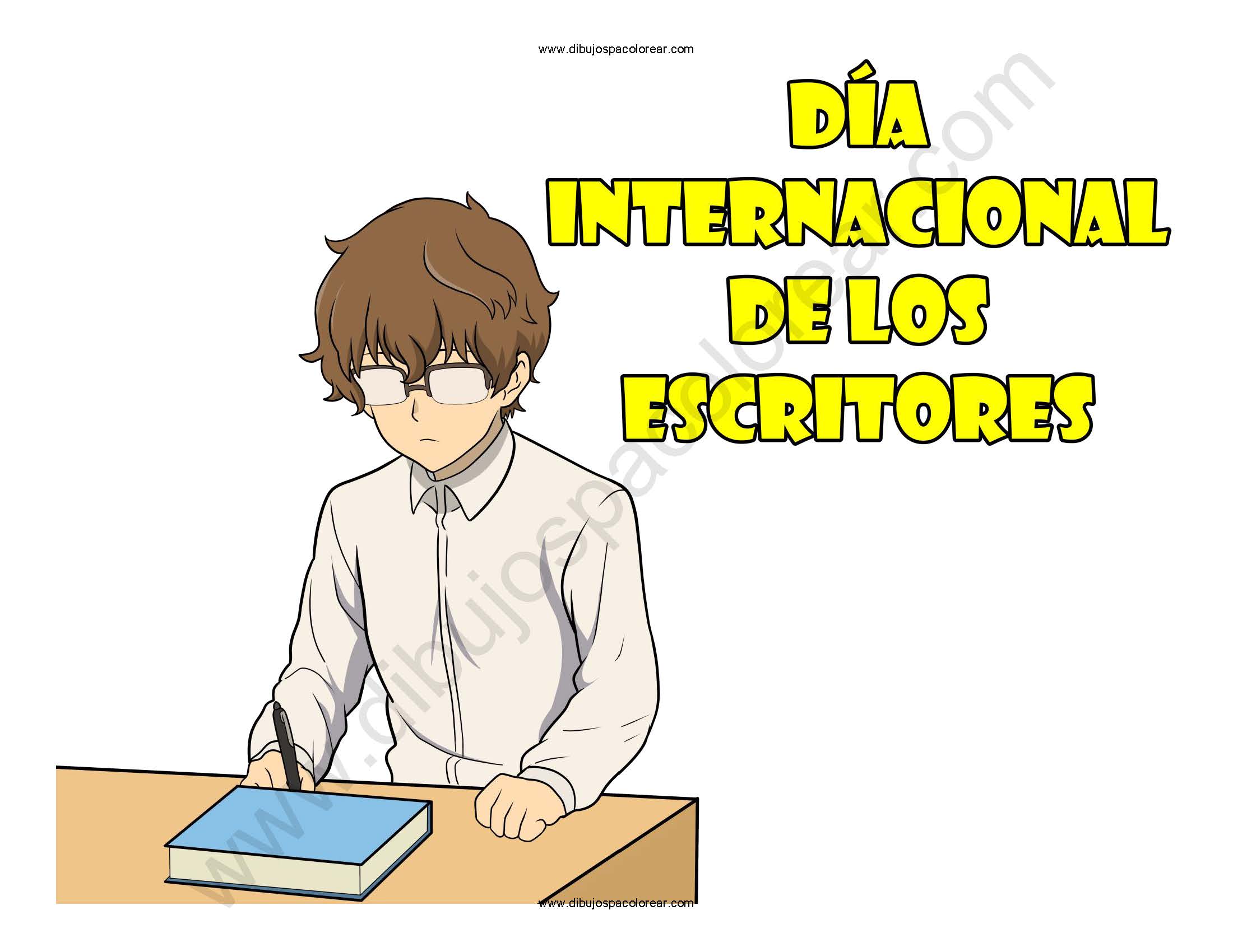 Día Internacional de los Escritores dibujo a color y para colorear.