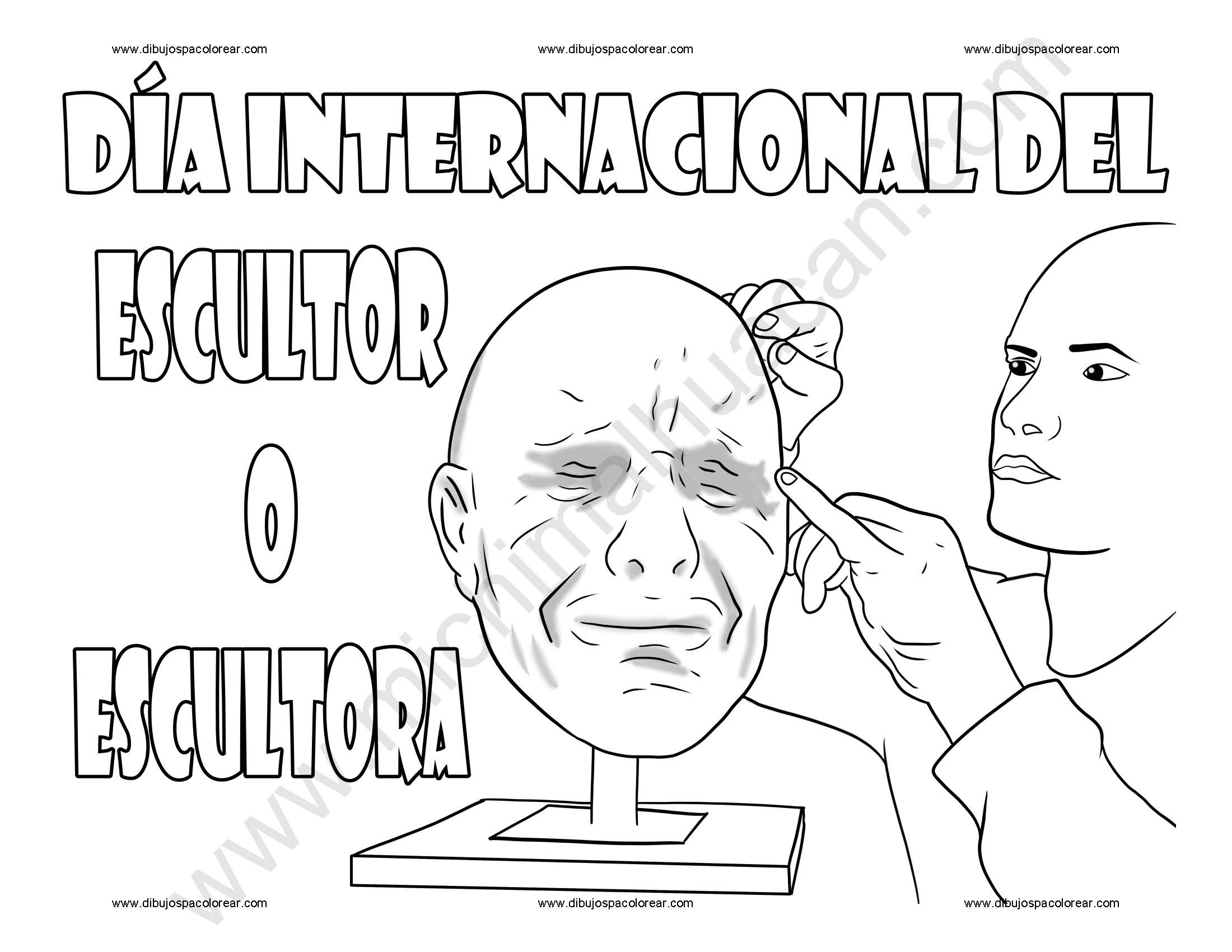 Día Internacional del Escultor o escultora dibujo a color y para colorear