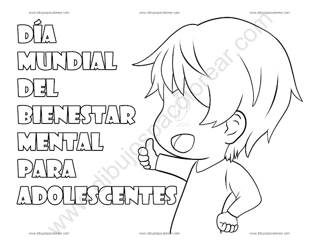 Día Mundial del Bienestar Mental para Adolescentes dibujo a color y para colorear