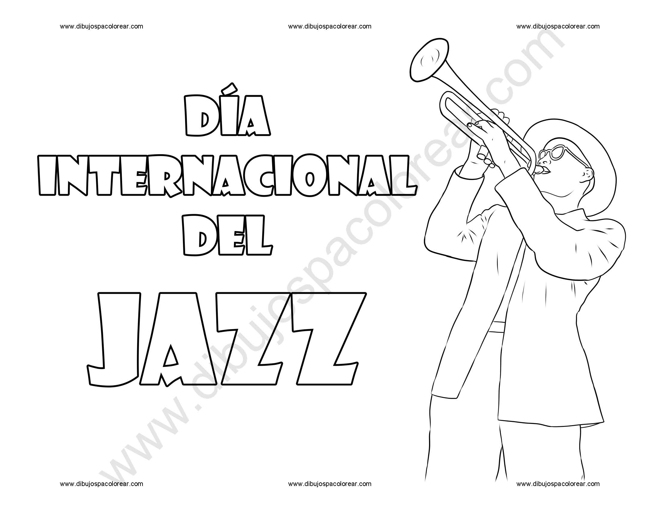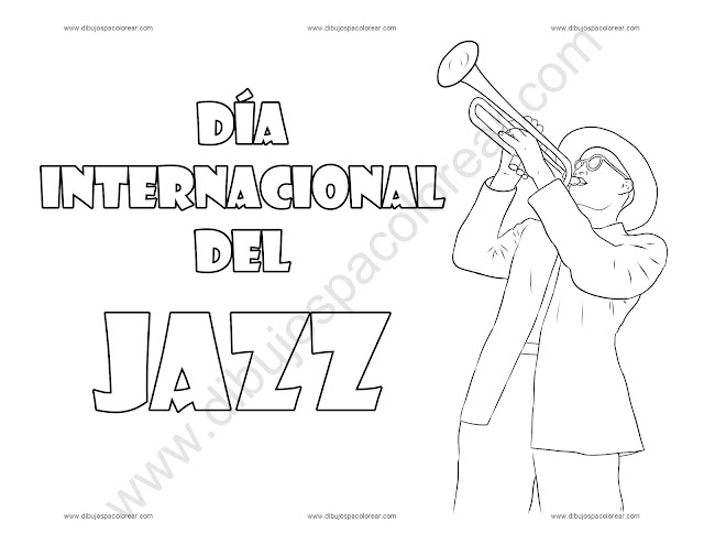 Día internacional del Jazz dibujo a color y para colorear