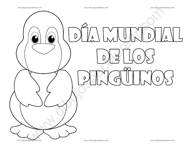 Dia mundial de los pingüinos dibujo a color y para colorear.