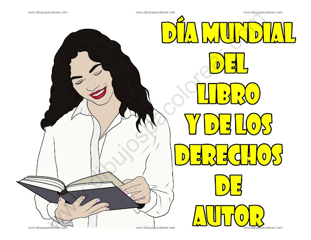 Día Mundial del Libro y de los Derechos de Autor dibujo a color y para colorear