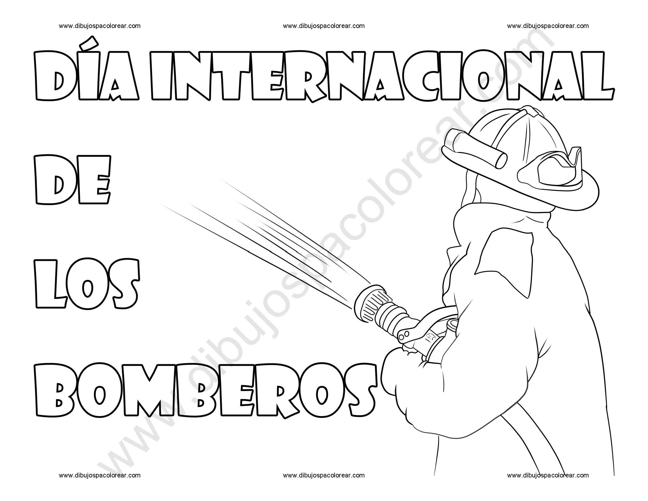 Día internacional de los Bomberos dibujo a color y para colorear.