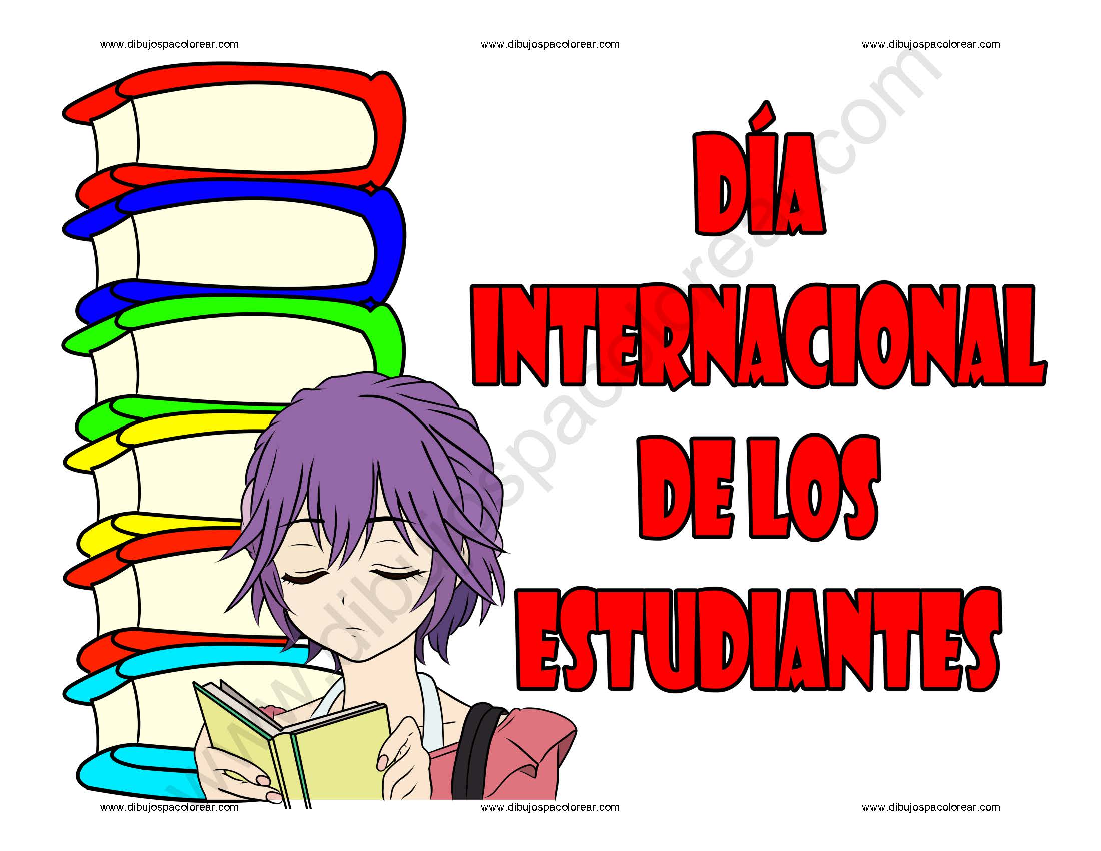 Día internacional de los Estudiantes dibujo a color y para colorear