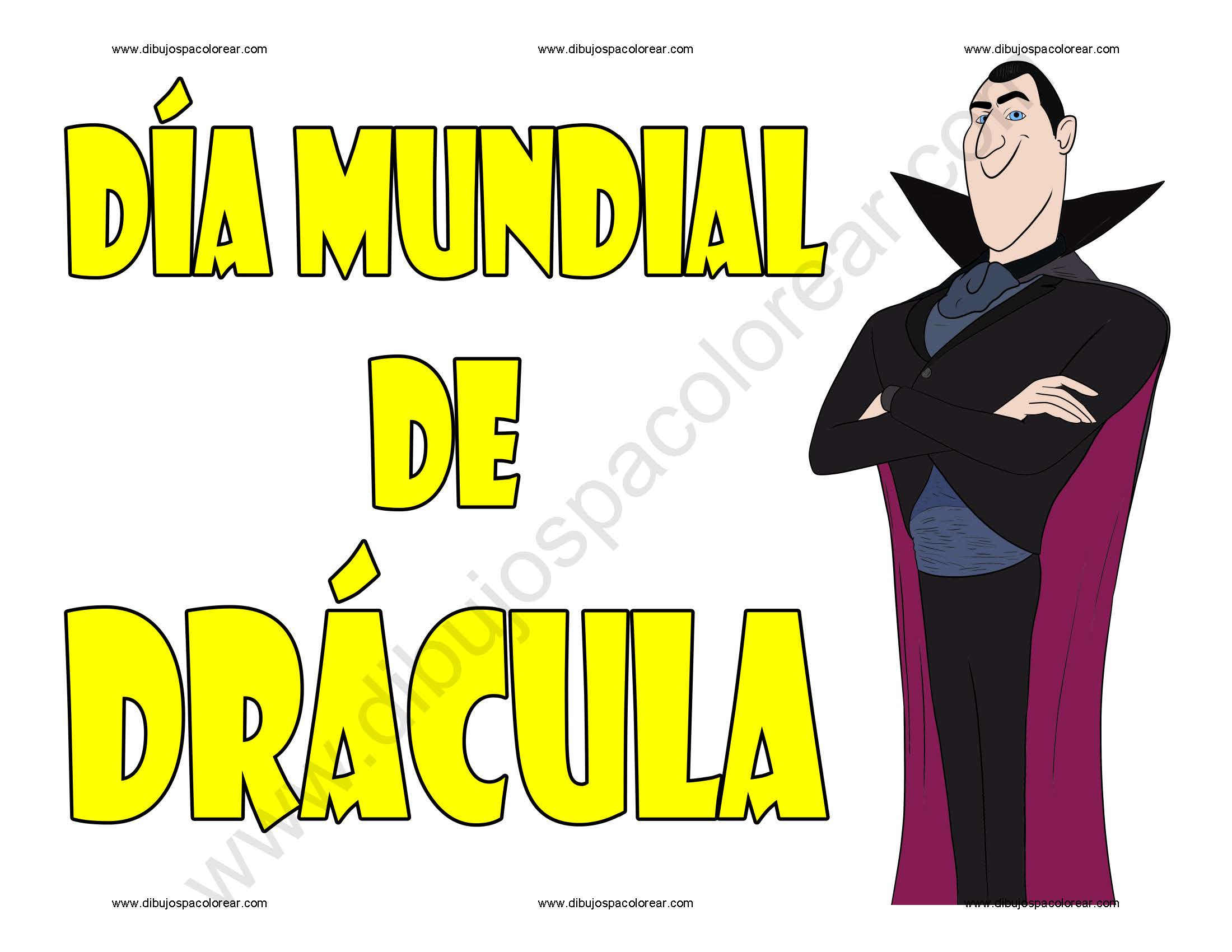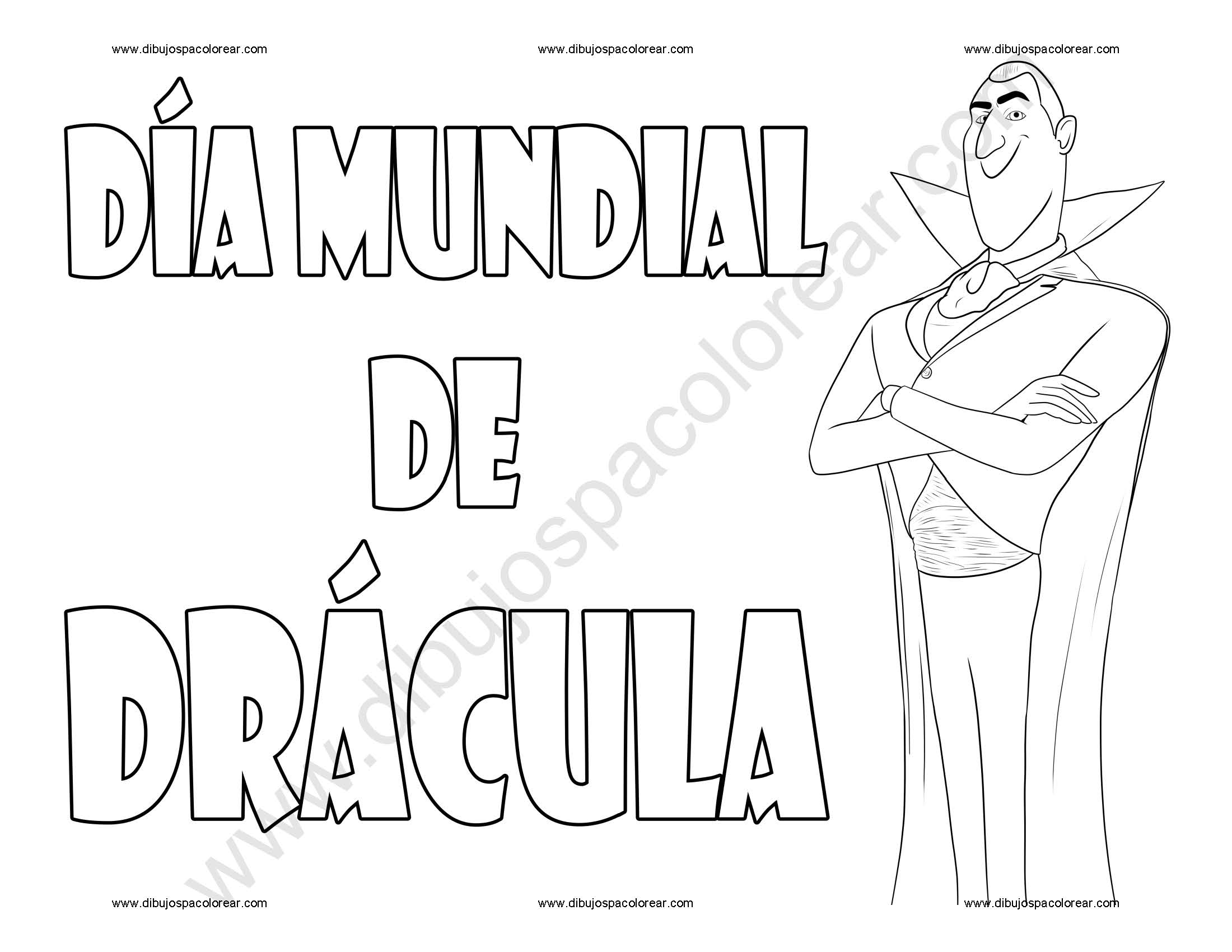 Día Mundial de Drácula dibujo a color y para colorear