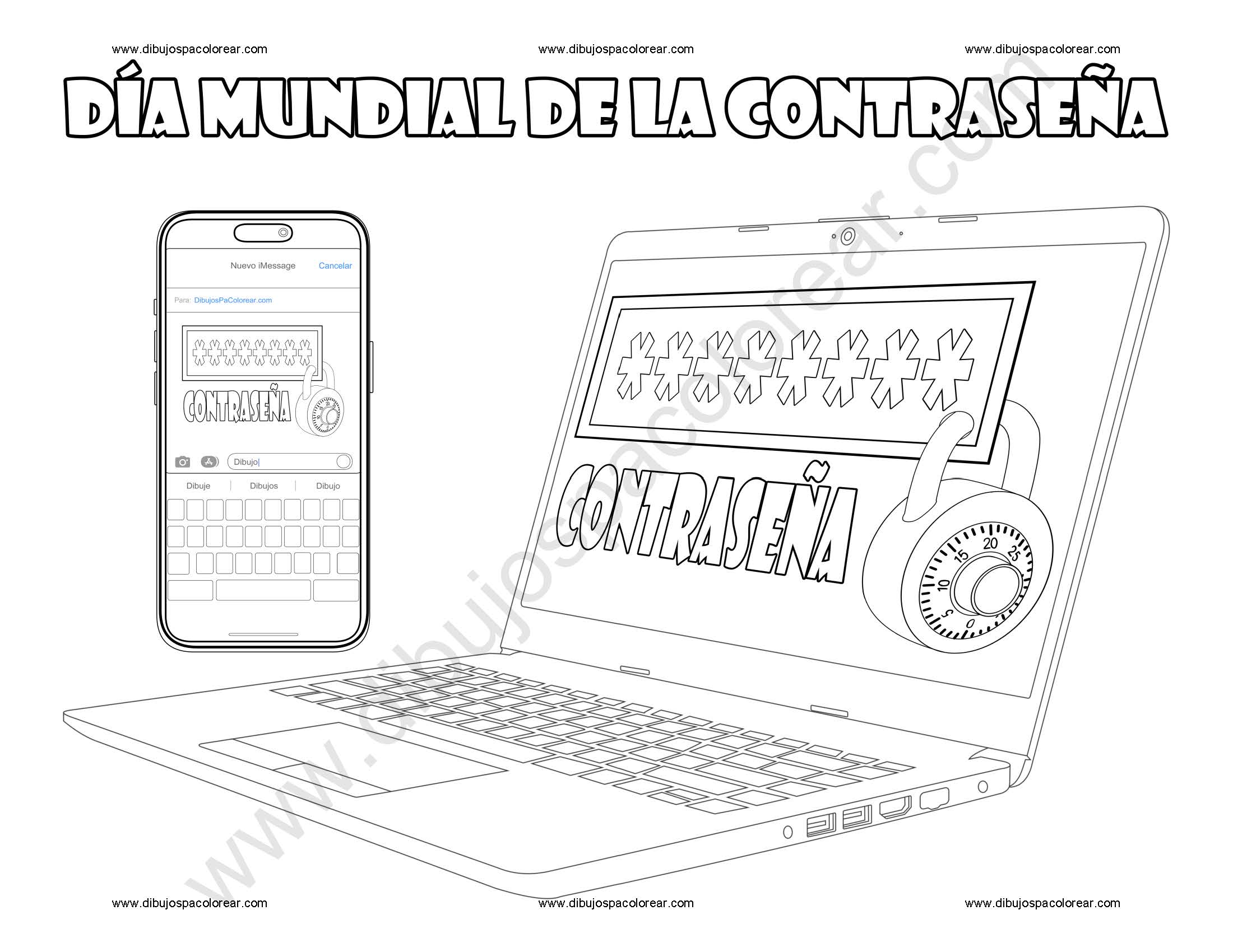 Día Mundial de la Contraseña dibujo a color y para colorear