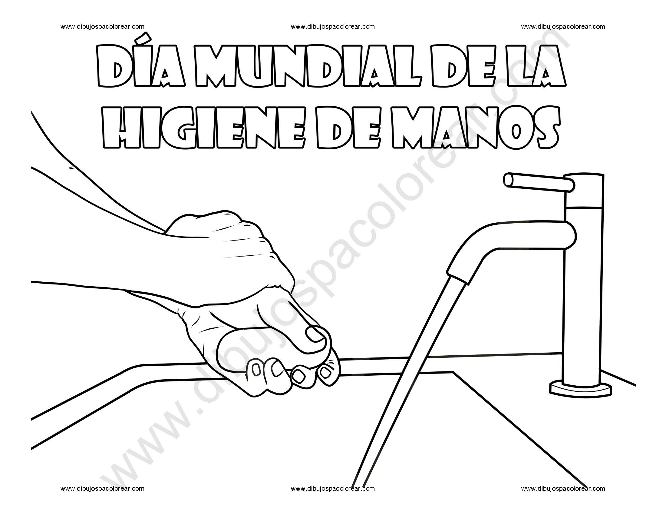 Día mundial de la Higiene de Manos dibujo a color y para colorear