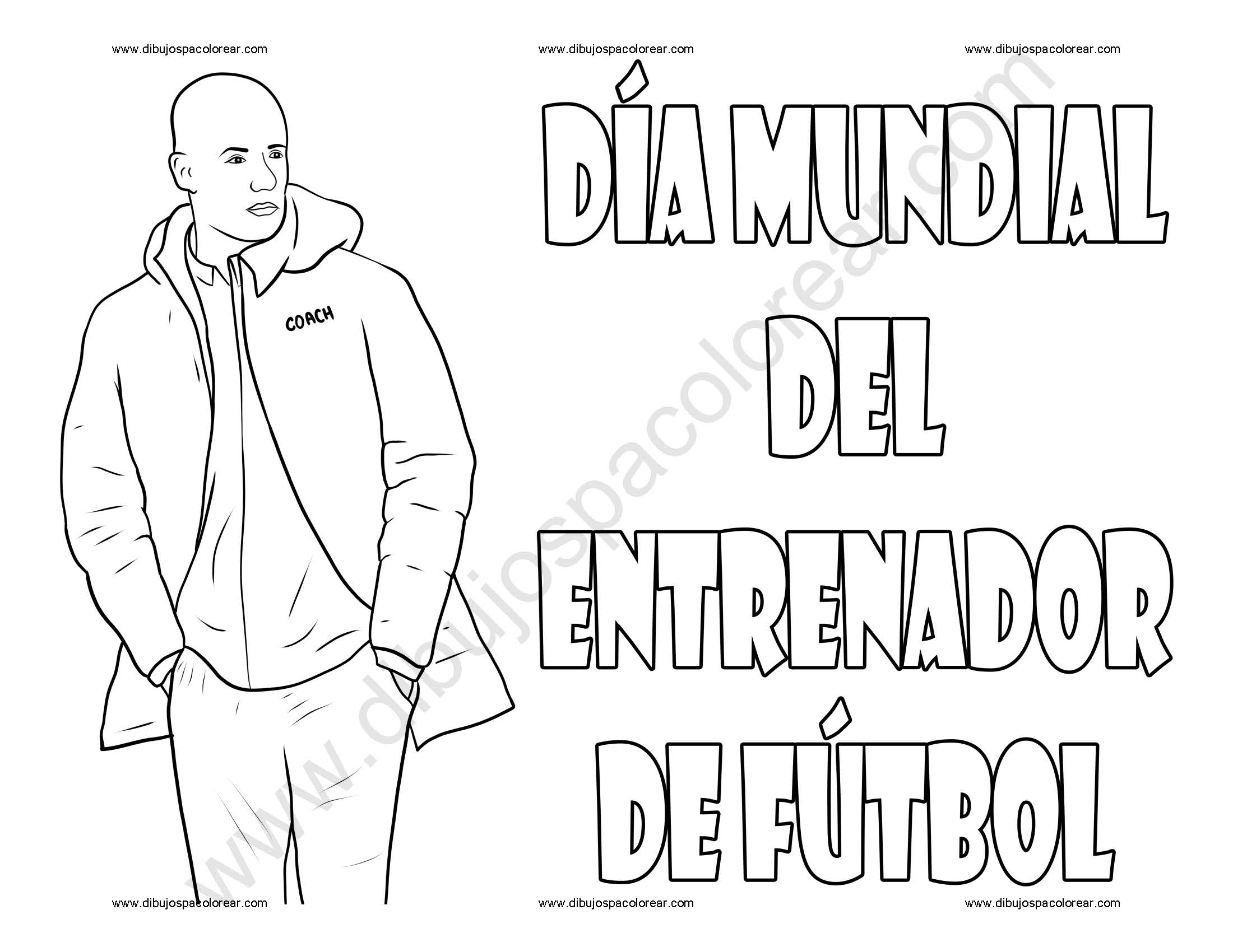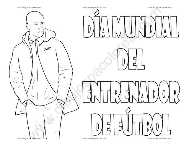 Día Mundial del Entrenador de Futbol dibujo a color y para colorear