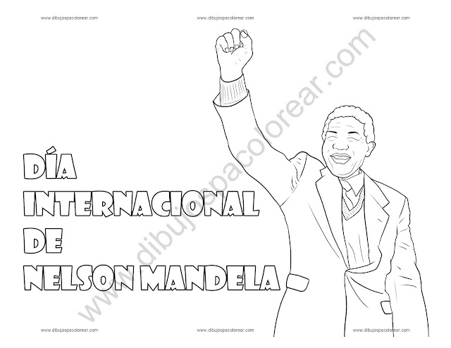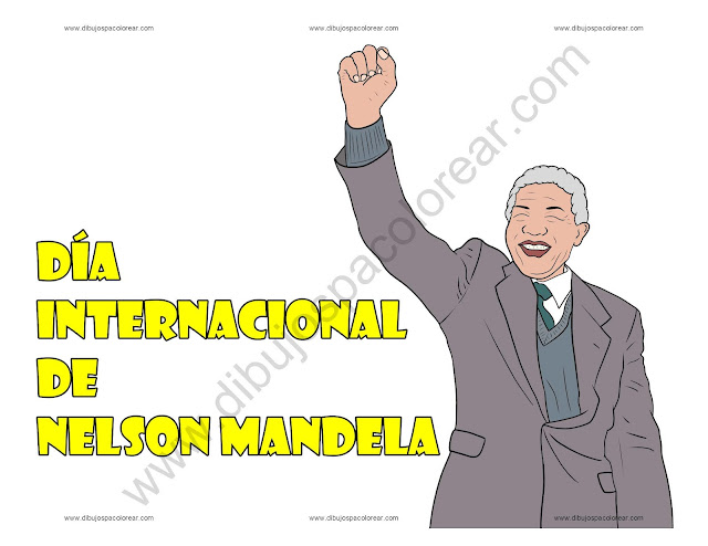 Día Internacional de Nelson Mandela dibujo a color y para colorear